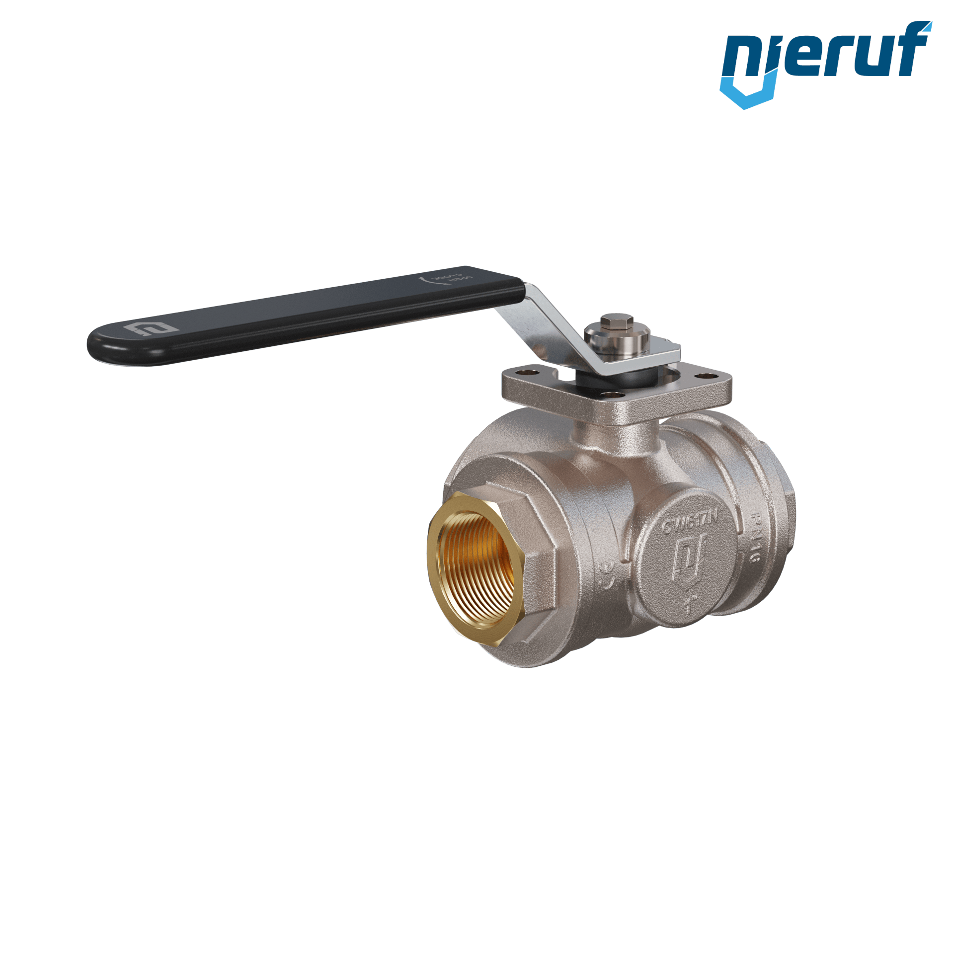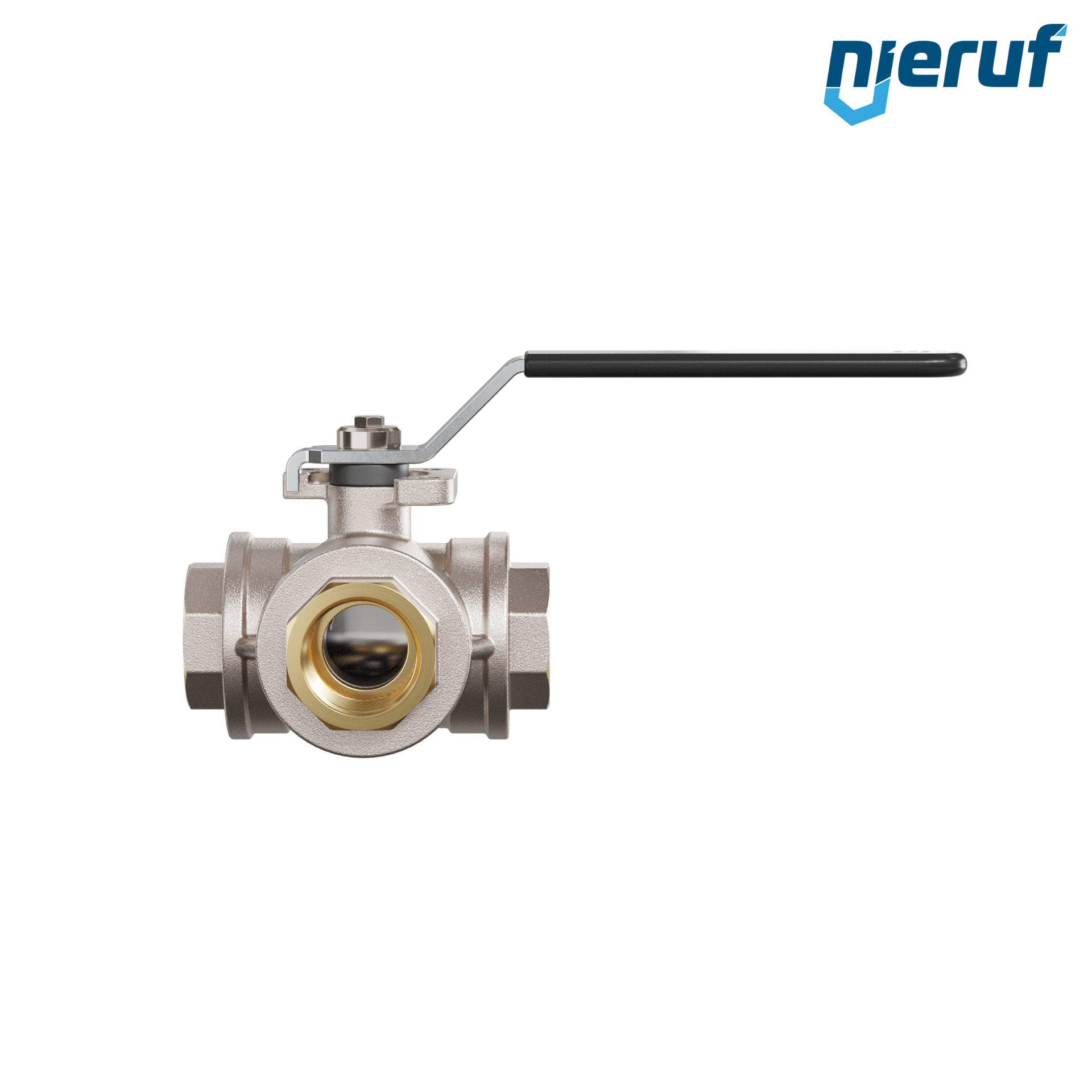 | Cechy charakterystyczne produktu | Mosiężny zawór kulowy trójdrożny z dławnicą i kulą pływającą z otworem typu L |