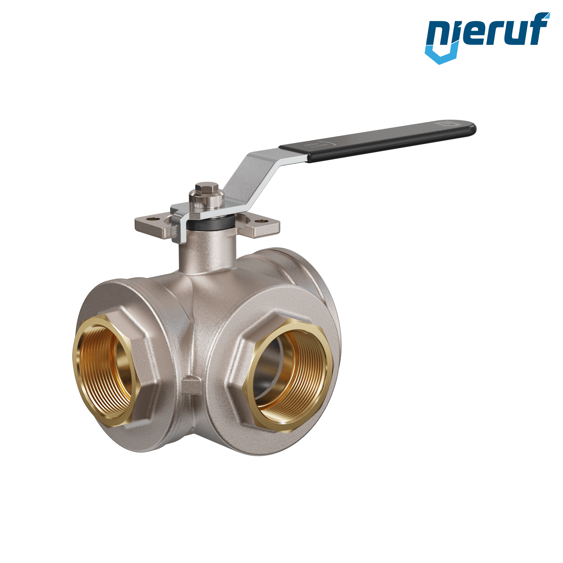 | Cechy charakterystyczne produktu | Mosiężny zawór kulowy trójdrożny z dławnicą i kulą pływającą z otworem typu L |
