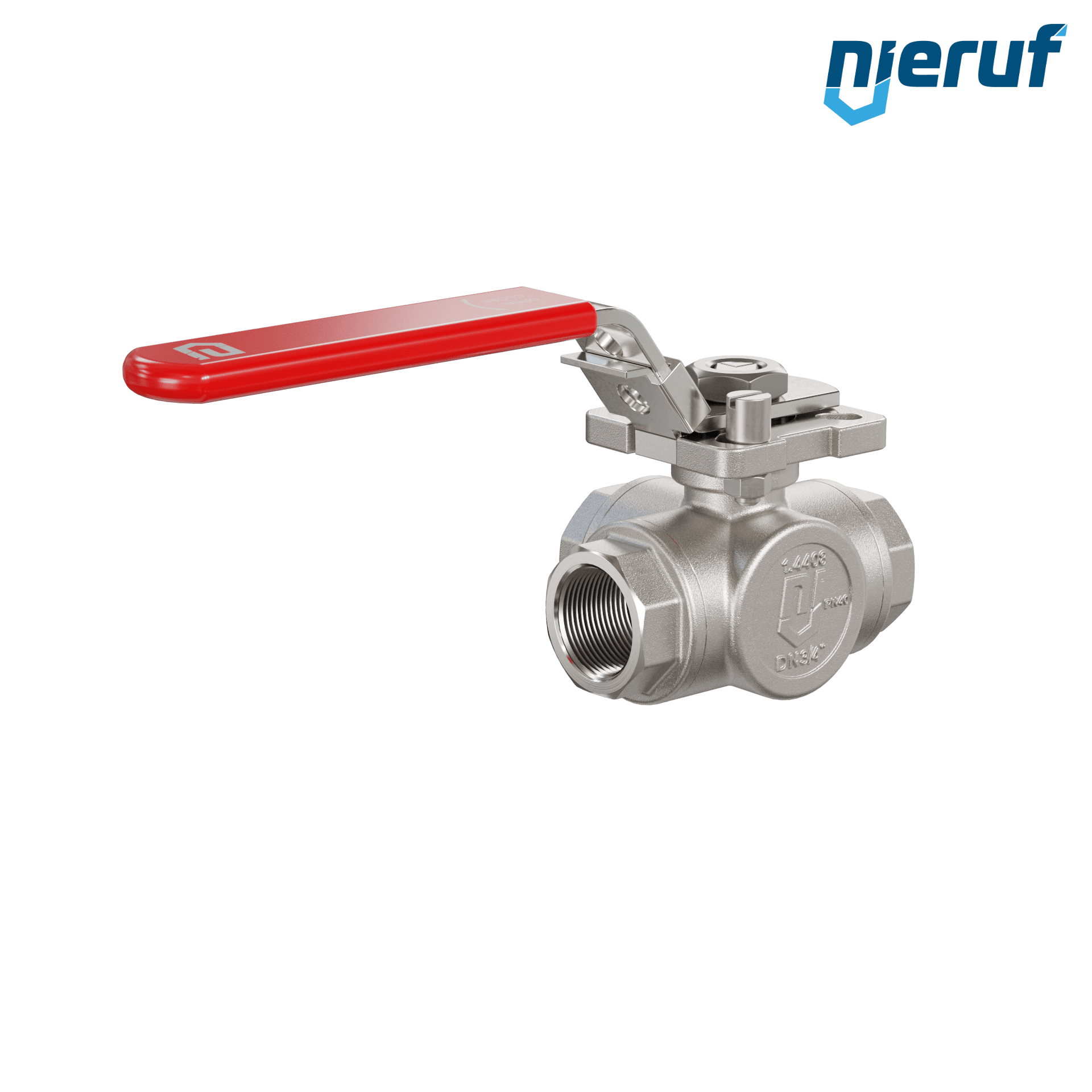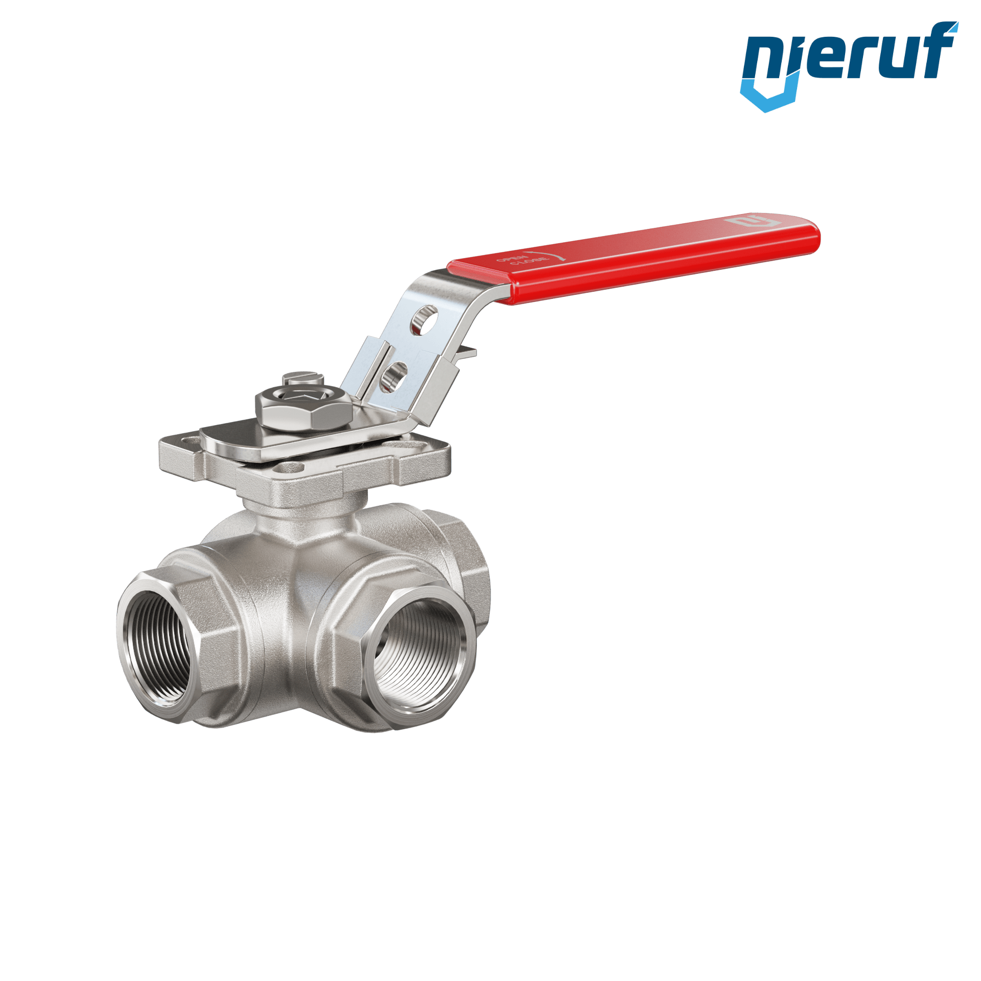 | Cechy charakterystyczne produktu | Trójdrożny zawór kulowy ze stali nierdzewnej z dławnicą i kulą pływającą z otworem typu L |