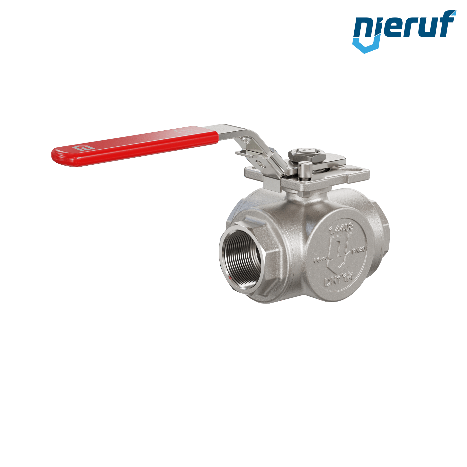 3 drożny zawór kulowy ze stali nierdzewnej DN32 - 1 1/4" cala z otworem T i uszczelnieniem z PTFE do płynnych i gazowych mediów