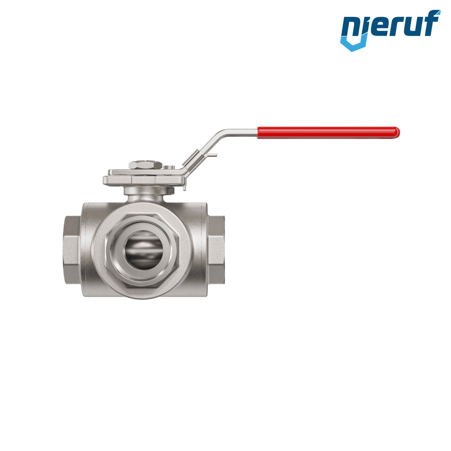 3 drożny zawór kulowy ze stali nierdzewnej DN40 - 1 1/2" cala z otworem T i uszczelnieniem z PTFE do płynnych i gazowych mediów