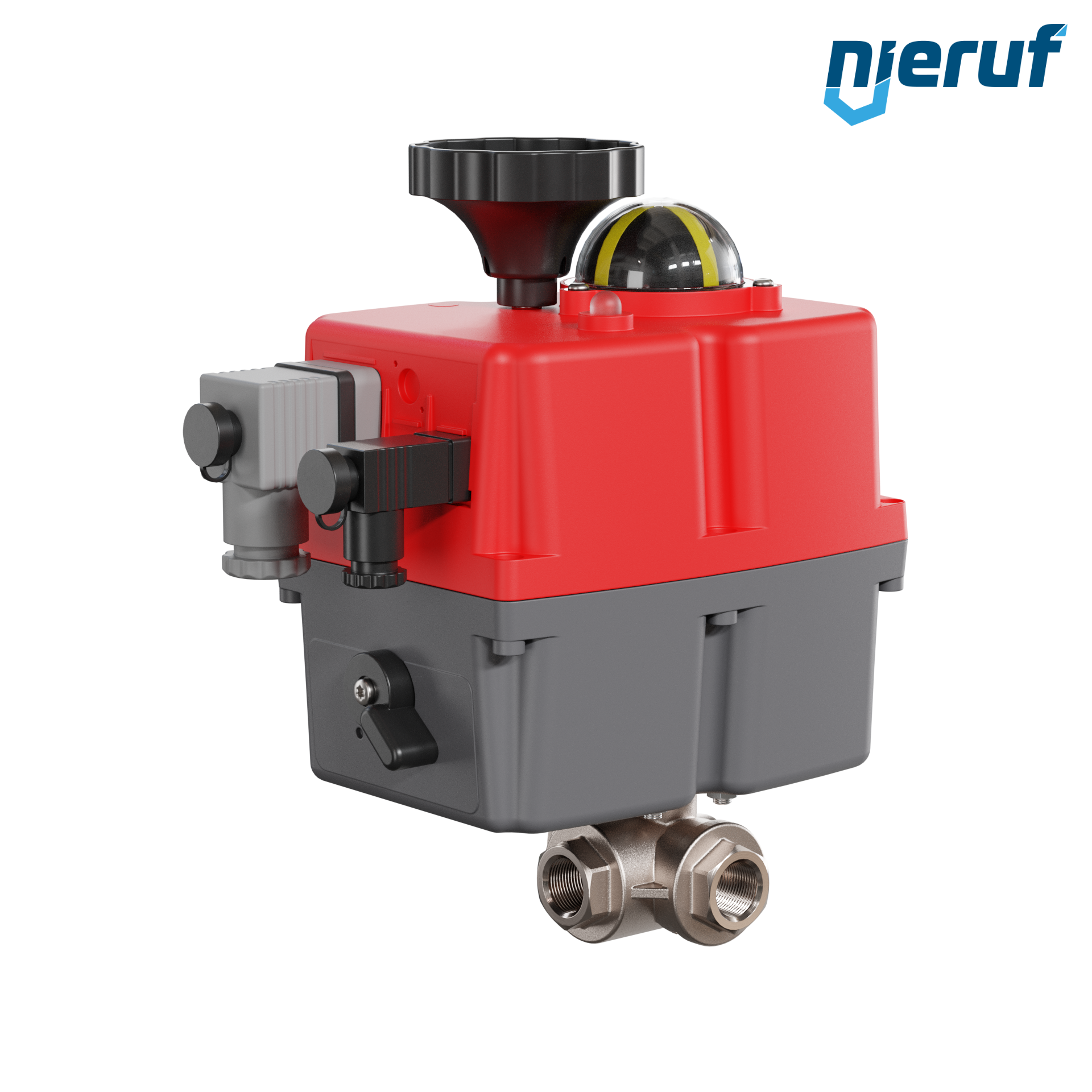 Ten wysokiej jakości automatyczny mosiężny zawór kulowy z elektronicznym siłownikiem obrotowym (seria S) posiada wizualny wskaźnik położenia i ręczne przesterowanie awaryjne.