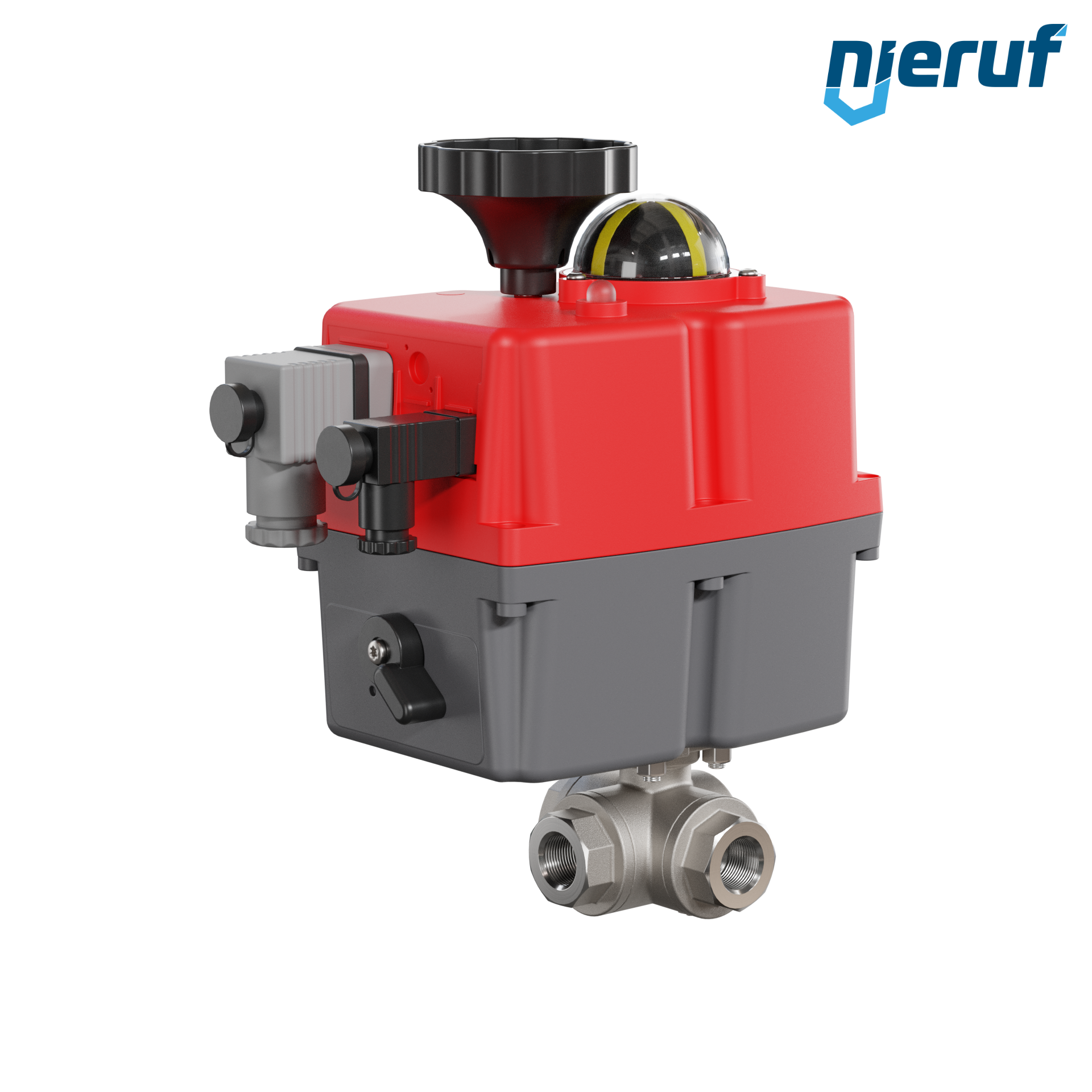 3-drożny elektryczny zawór kulowy 24-240V DN10 - 3/8" cala stal nierdzewna 1.4408 niklowany zredukowany przepływ otwór L do płynnych i gazowych mediów