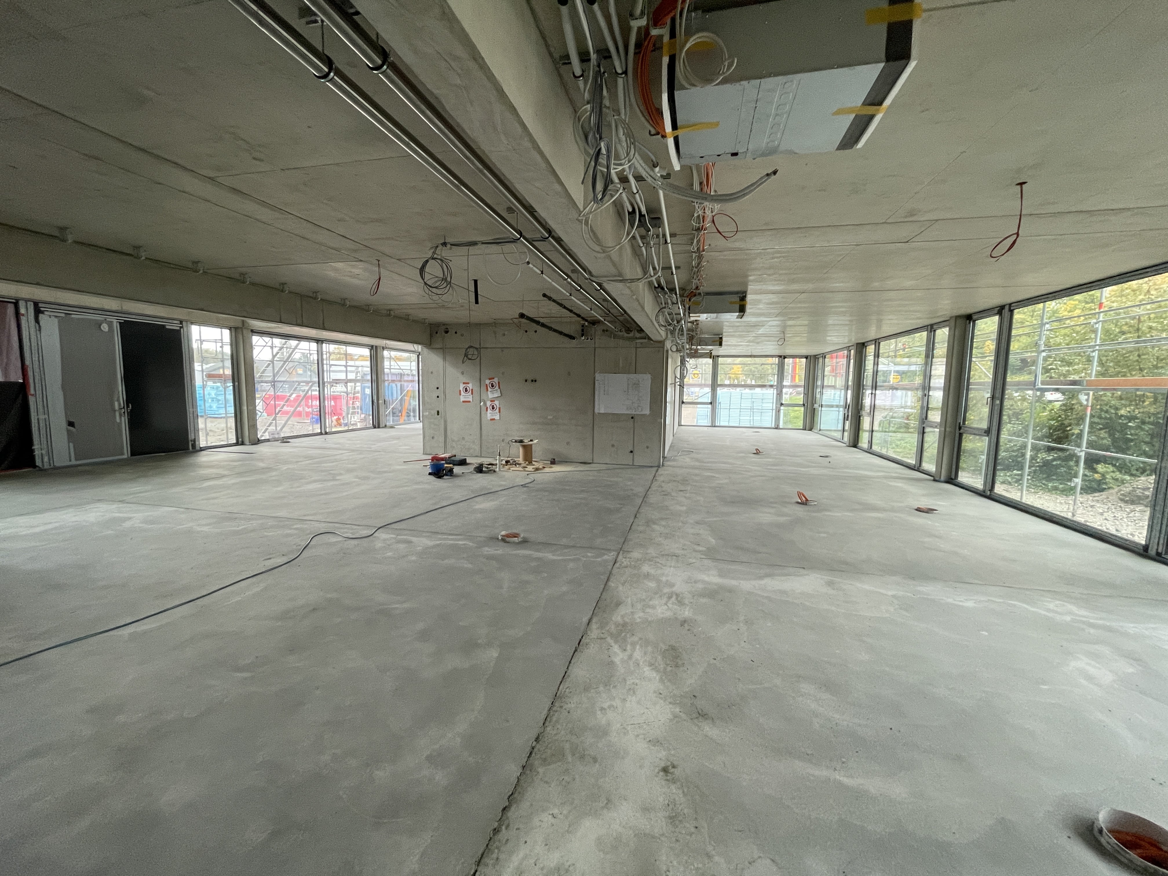 W październiku prace w budynku biurowym nabrały tempa: Instalacje elektryczne i sanitarne na parterze zostały zakończone. Przewody, przyłącza i podstawowe instalacje są przygotowane – to ważny krok w kierunku dalszych prac wykończeniowych wewnątrz.