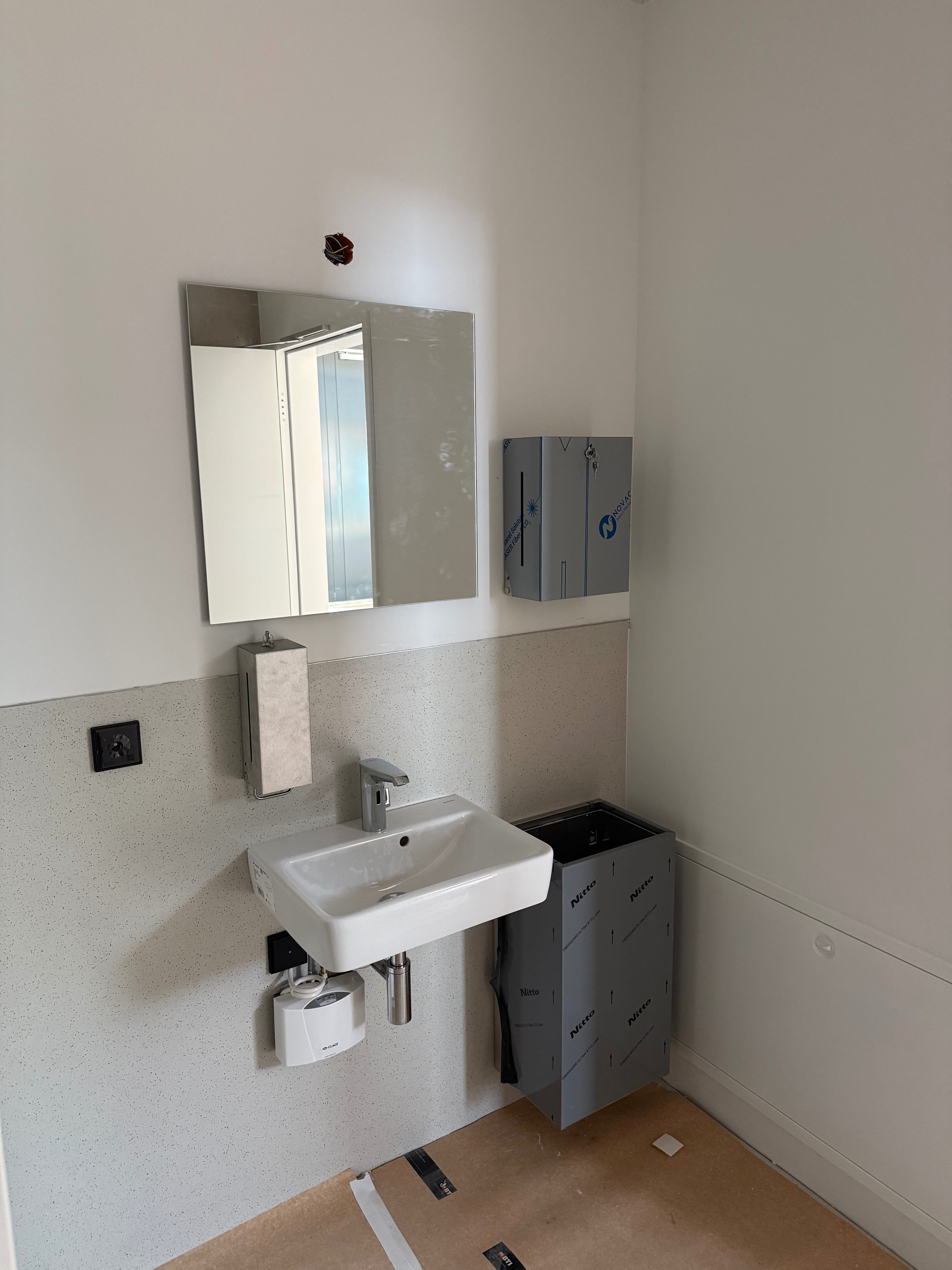 W październiku prace w budynku biurowym nabrały tempa: Instalacje elektryczne i sanitarne na parterze zostały zakończone. Przewody, przyłącza i podstawowe instalacje są przygotowane – to ważny krok w kierunku dalszych prac wykończeniowych wewnątrz.