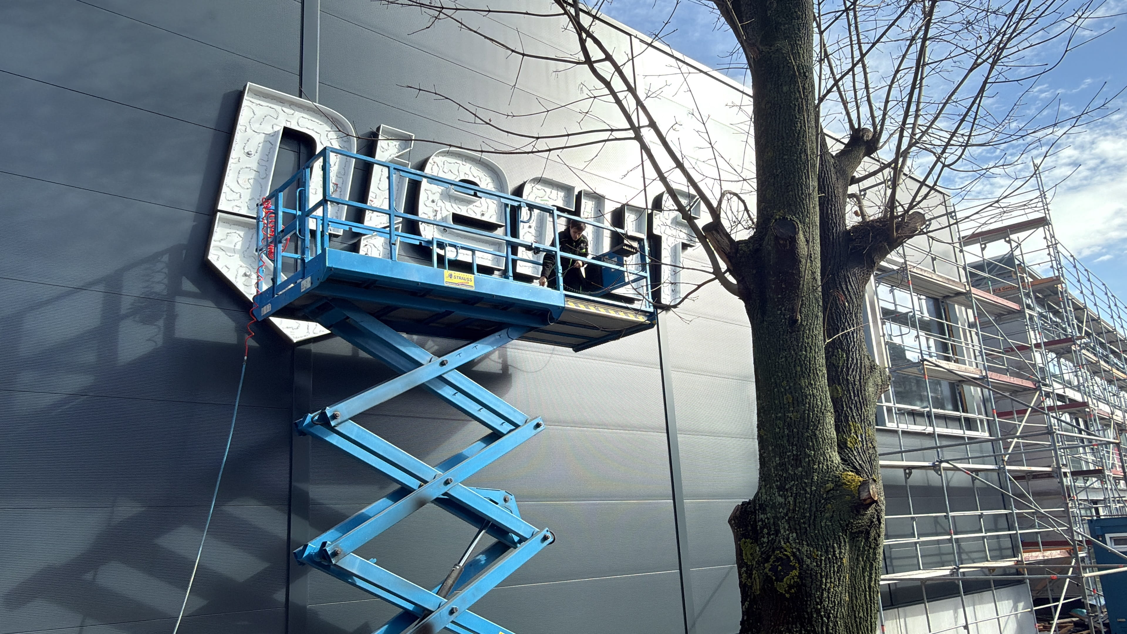 Montaż naszego logo nadaje nowemu budynkowi jego ostateczny charakter – i stanowi widoczne zakończenie kolejnego etapu projektu.