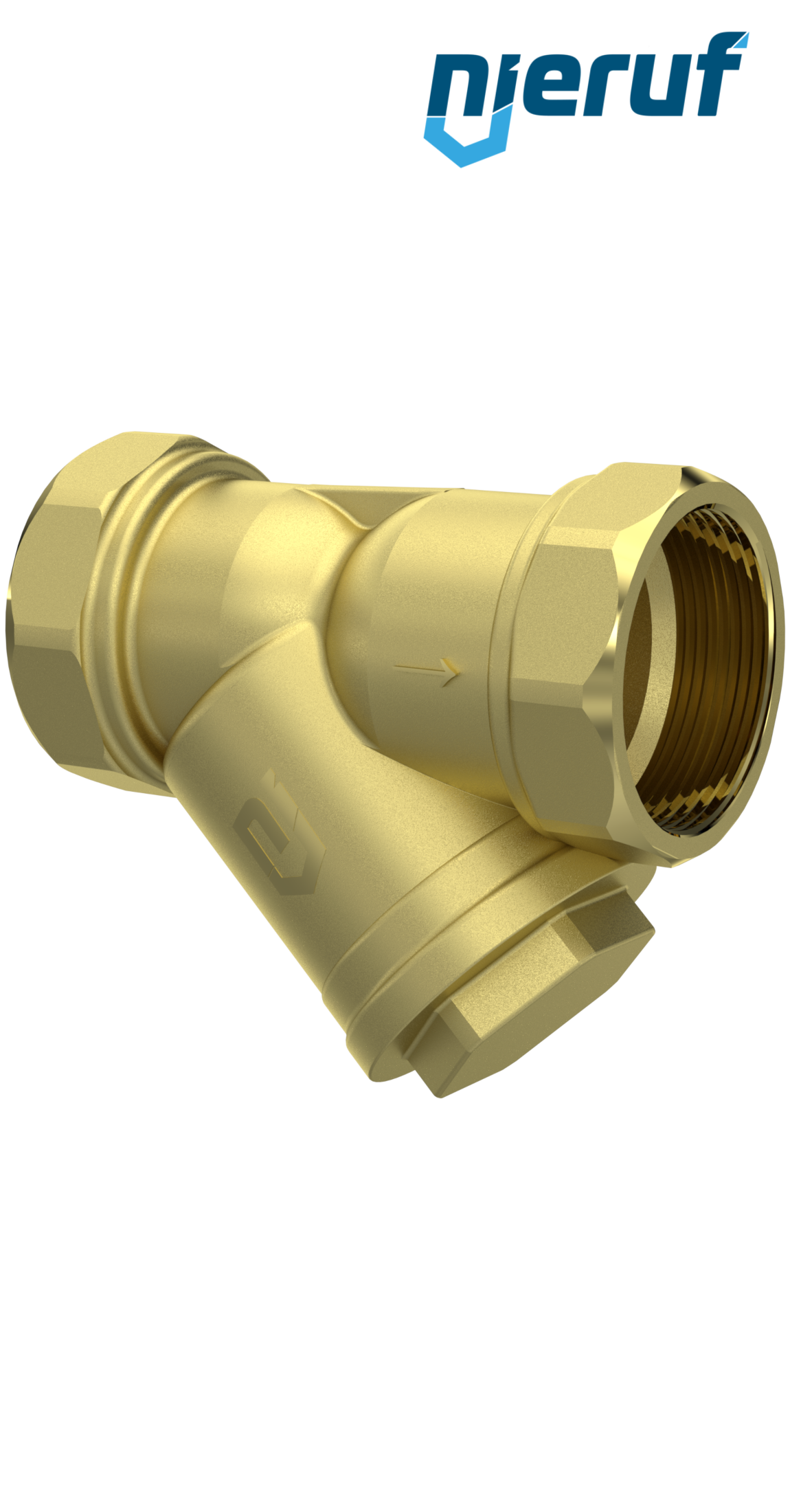 Gwintowany filtr siatkowy wykonany z mosiądzu w kształcie litery Y z wyjmowanym filtrem ze stali nierdzewnej, do montażu poziomego lub pionowego.