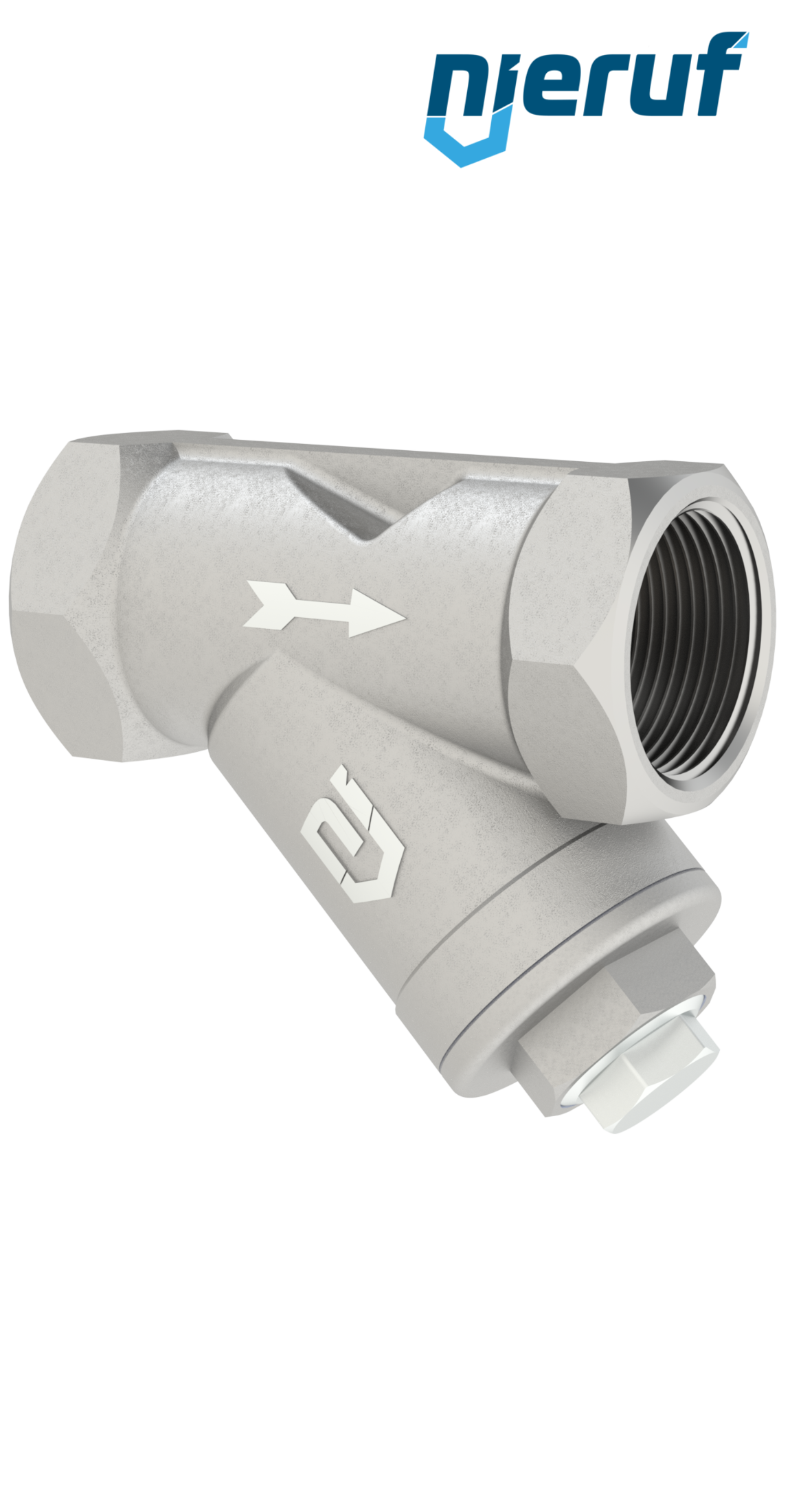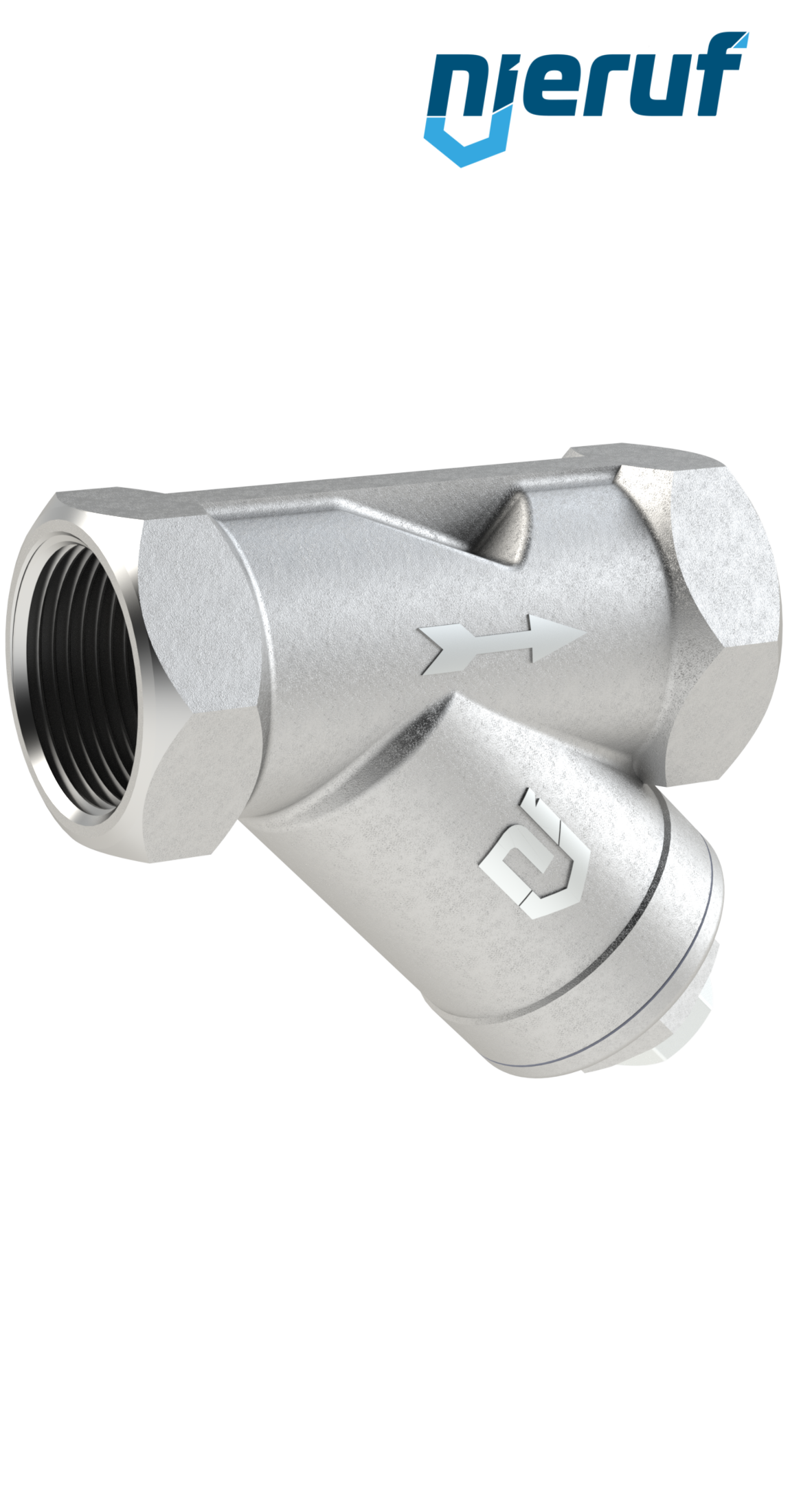 Gwintowany filtr siatkowy wykonany ze stali nierdzewnej w kształcie litery Y z korkiem uszczelniającym i wyjmowanym filtrem ze stali nierdzewnej, do montażu poziomego lub pionowego.