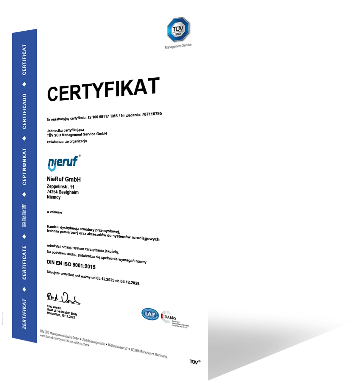 Pomyłki się zdarzają - jeśli popełniłeś błąd w rozmiarze nominalnym, zakresie ciśnienia, napięciu lub materiale, możesz zwrócić produkty oznaczone symbolem wymiany NieRuf, w ciągu 21 dni bez ponoszenia żadnych opłat za przechowywanie.
