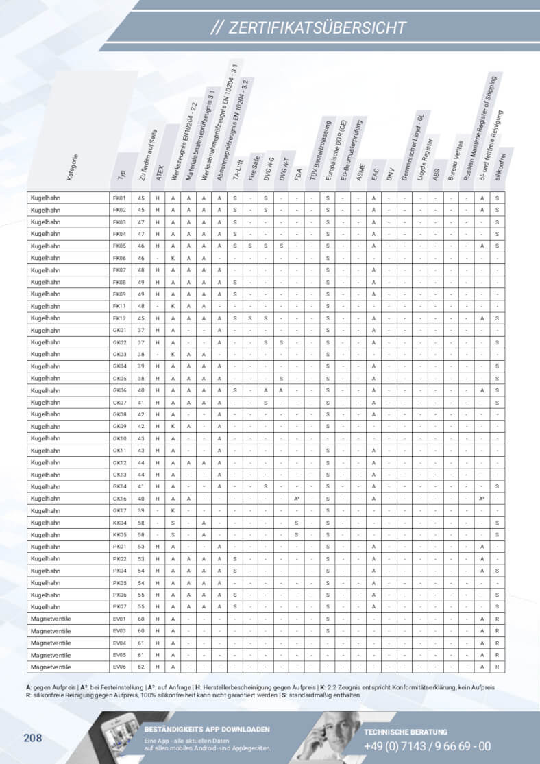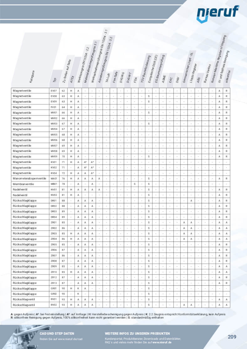 Przegląd certyfikatów pokazuje dla każdego produktu NieRuf, czy i na jakich warunkach dostępny jest certyfikat produktu.