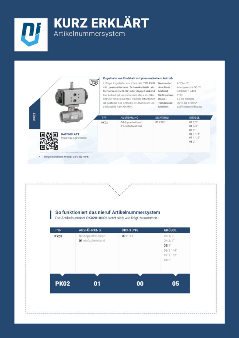 Dzięki naszemu systemowi numeracji artykułów NieRuf można odczytać najważniejsze właściwości produktu bezpośrednio z numeru artykułu. W zależności od oprawy lub technologii pomiarowej składa się on z różnych właściwości, takich jak typ, napięcie, konstrukcja, uszczelnienie, funkcja i rozmiar.