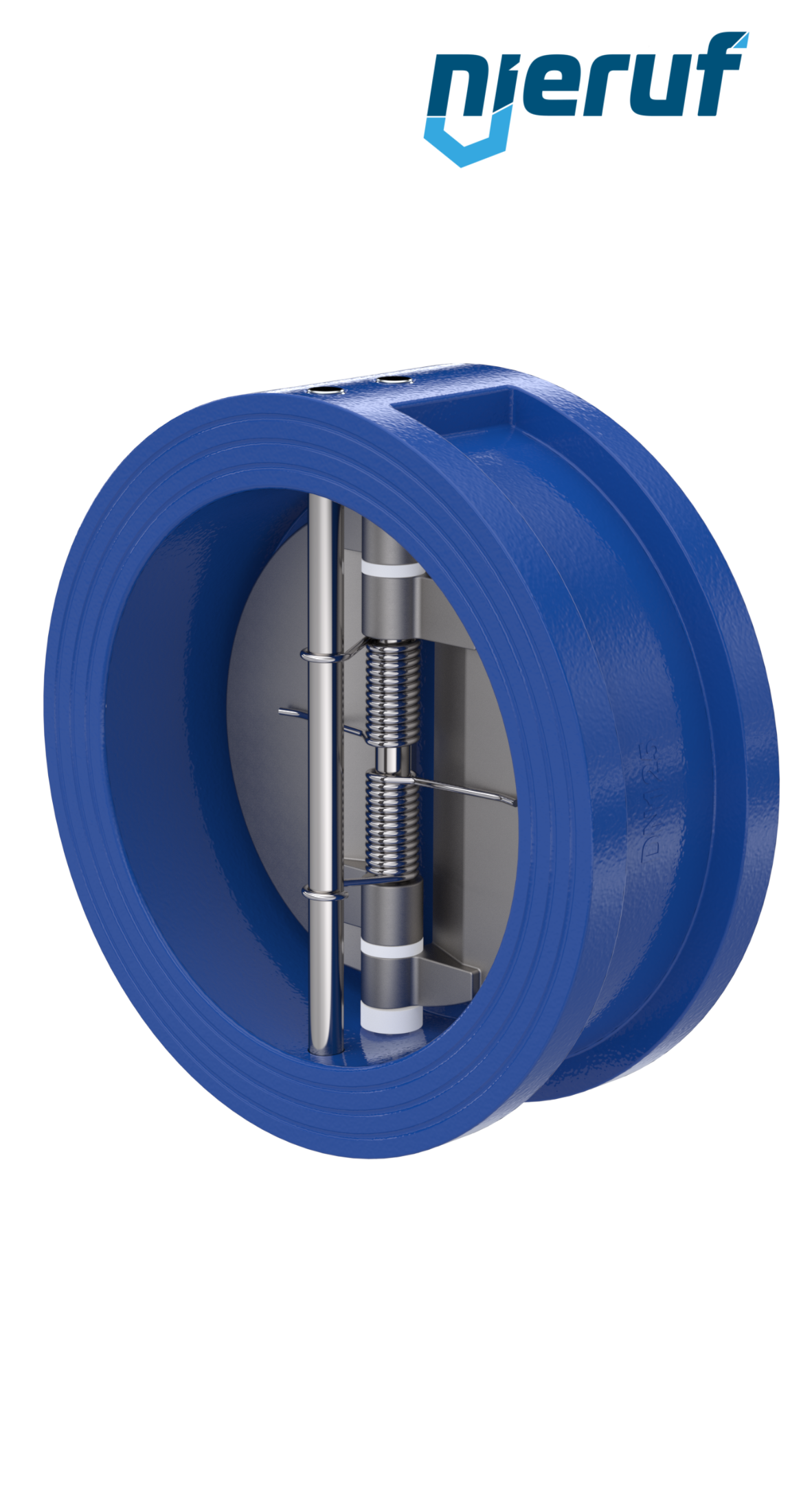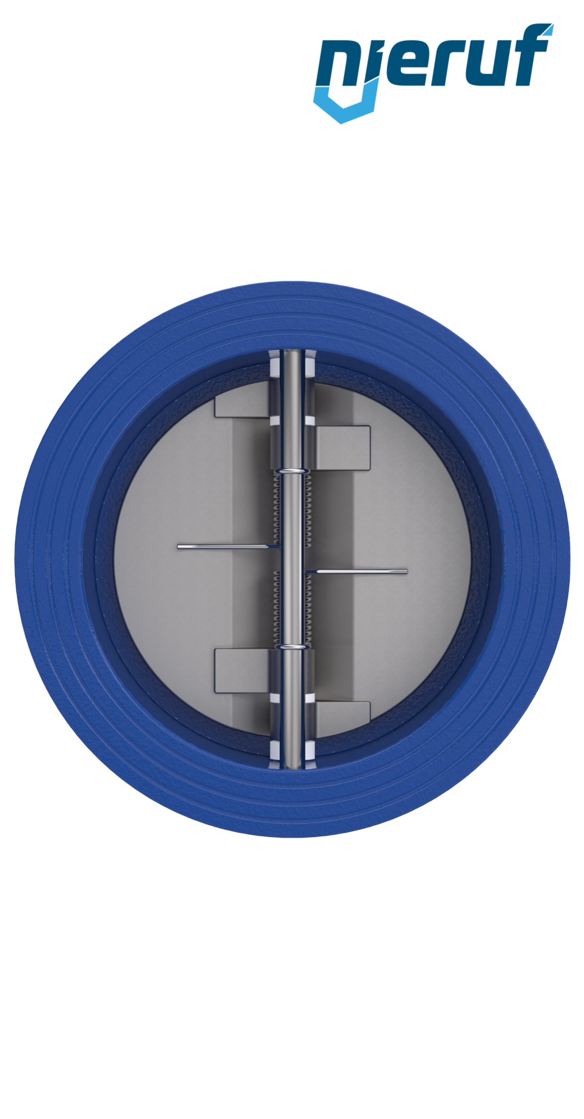 Klapa zwrotna dwuskrzydłowa DN125 uszczelnienie FKM (Viton) PN 10/16 DIN EN 1092-1 Forma B, korpus z żeliwa szarego ze skrzydłami ze stali nierdzewnej