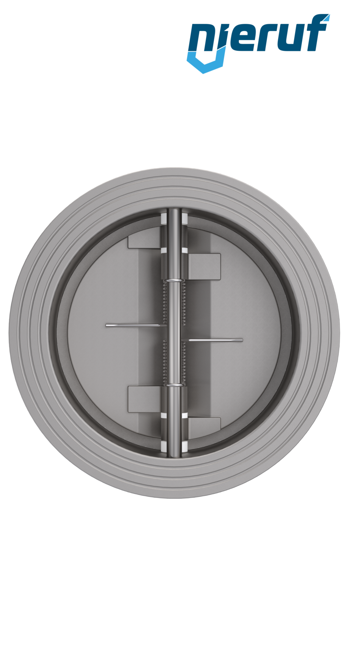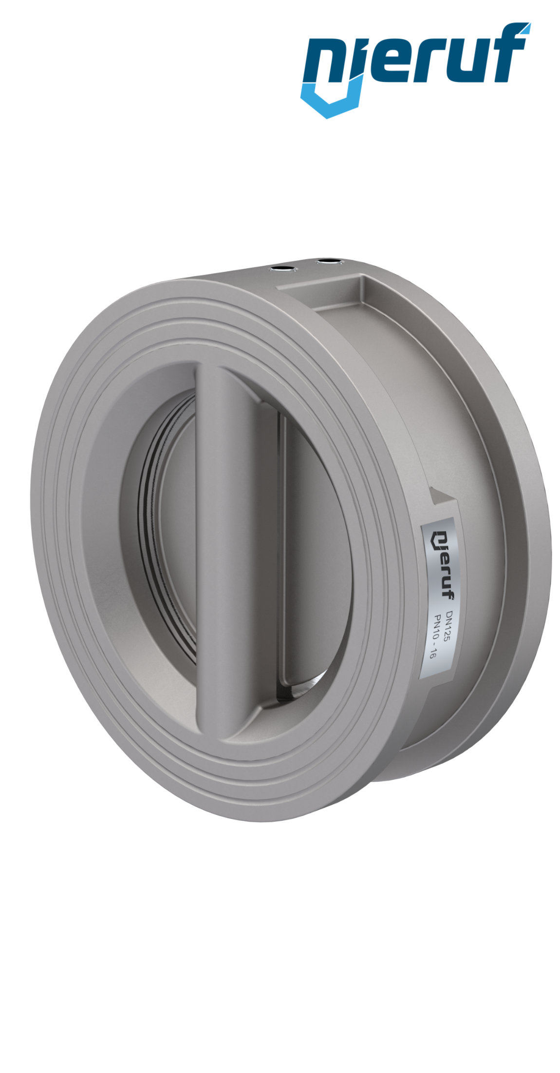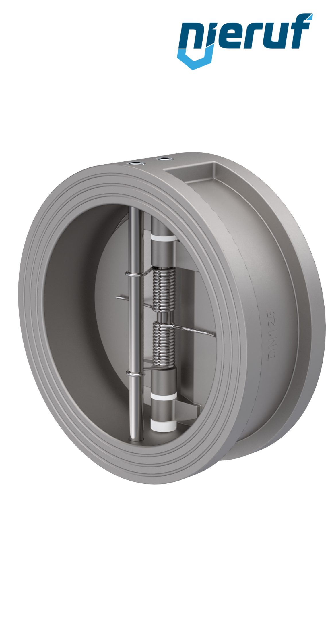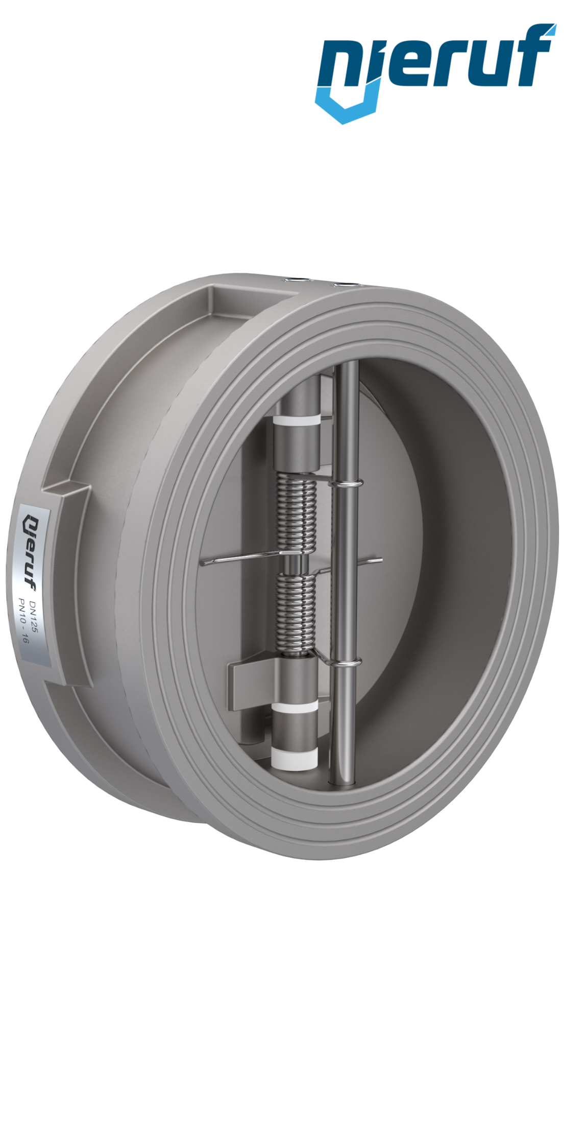 Klapa zwrotna dwuskrzydłowa DN125 uszczelnienie FKM (Viton) PN 10/16 DIN EN 1092-1 Forma B, korpus i skrzydła ze Stal nierdzewna 1.4408