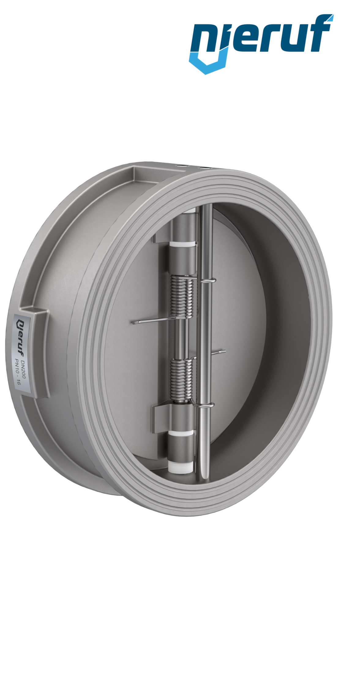 Klapa zwrotna dwuskrzydłowa DN200 uszczelnienie EPDM PN 10/16 DIN EN 1092-1 Forma B, korpus i skrzydła ze stali nierdzewnej 1.4408