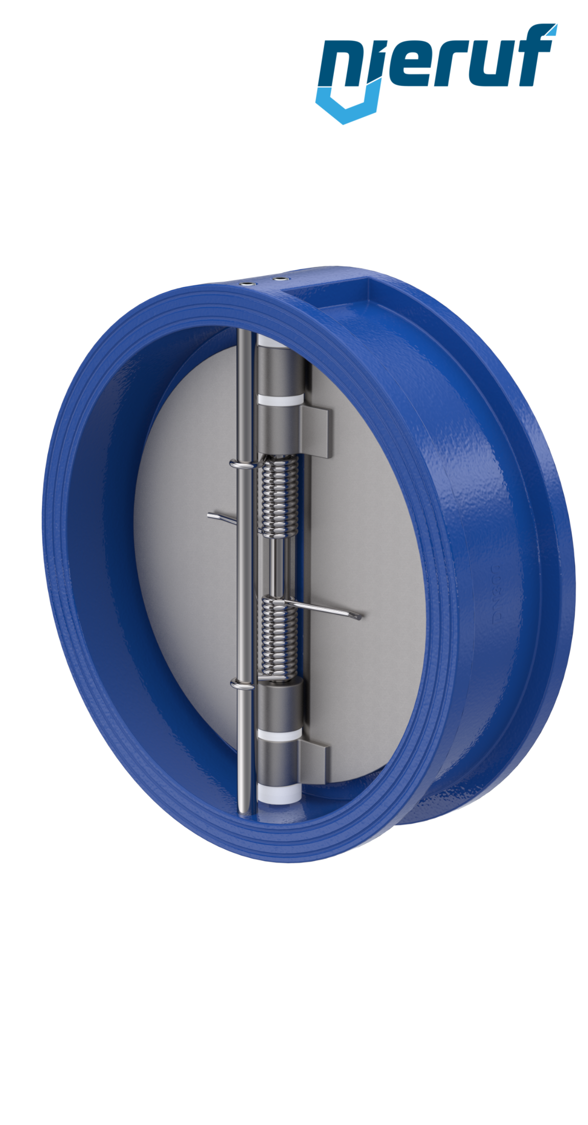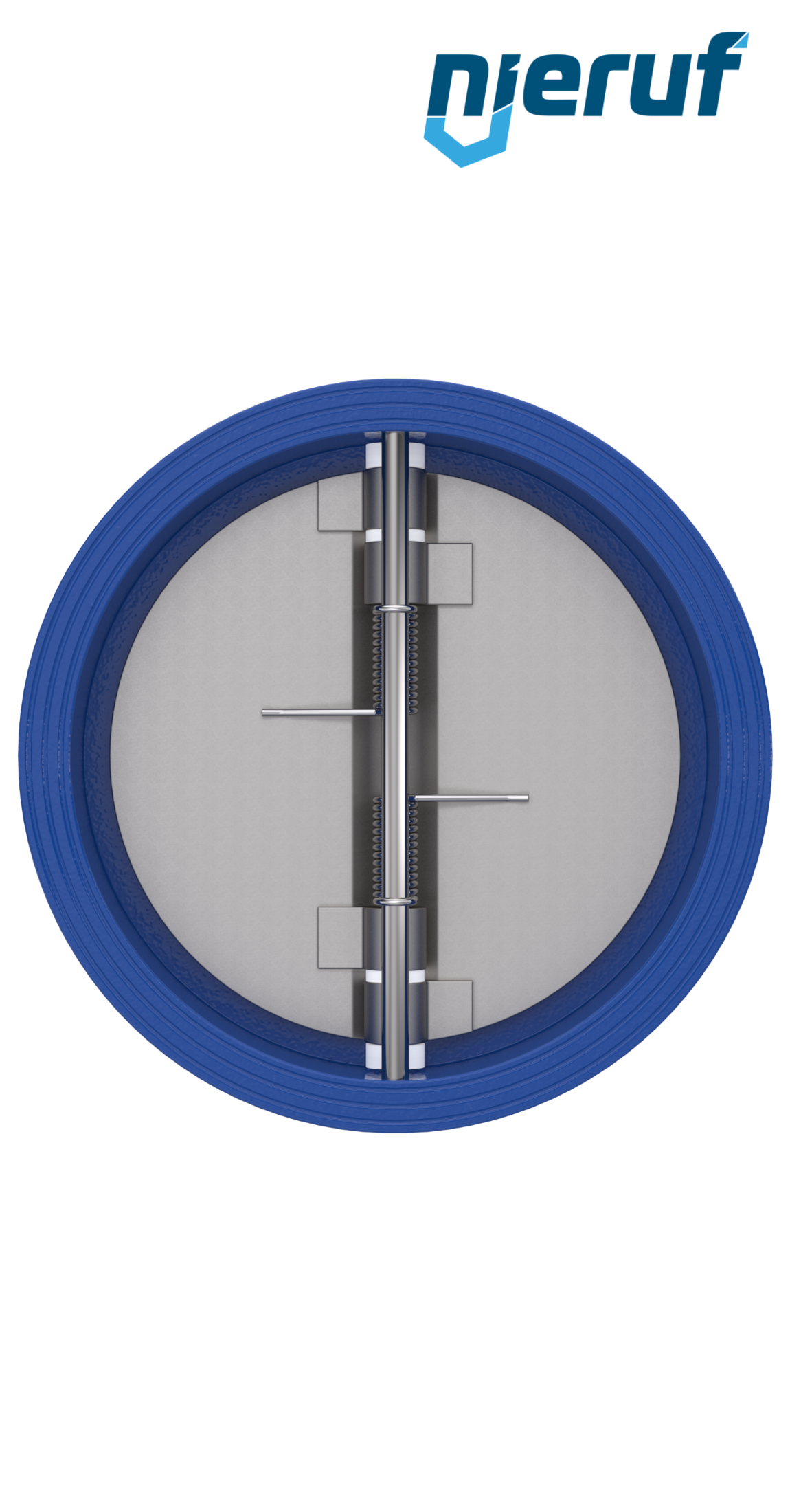 Klapa zwrotna dwuskrzydłowa DN300 uszczelnienie FKM (Viton) PN 10 DIN EN 1092-1 Forma B, korpus z GGG40 z niebieską powłoką epoksydową 180µm
