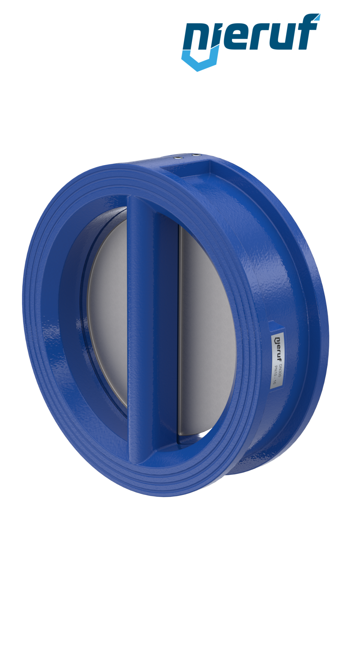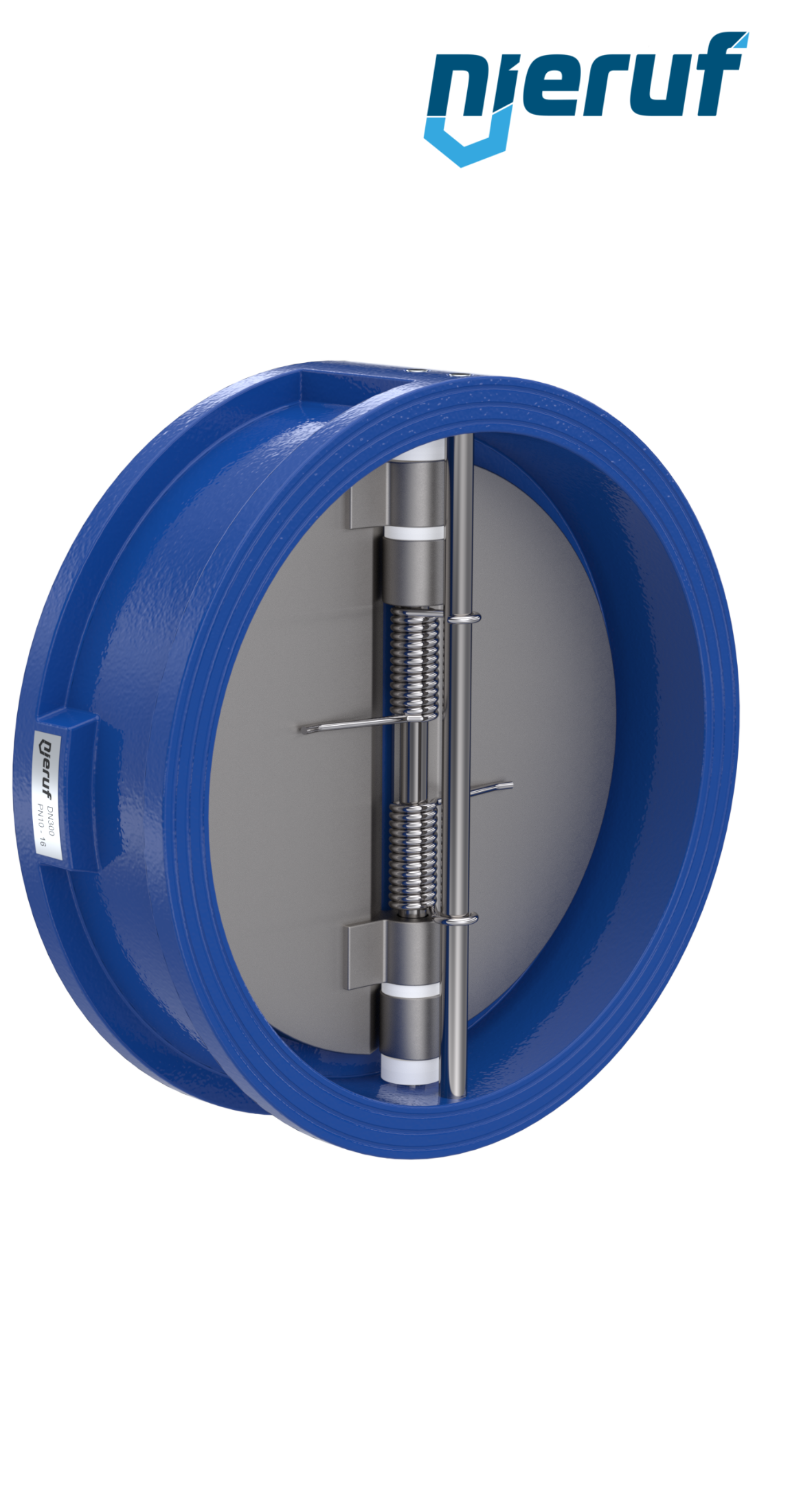 Klapa zwrotna dwuskrzydłowa DN300 uszczelnienie FKM (Viton) PN 10 DIN EN 1092-1 Forma B, korpus z żeliwa szarego ze skrzydłami ze stali nierdzewnej