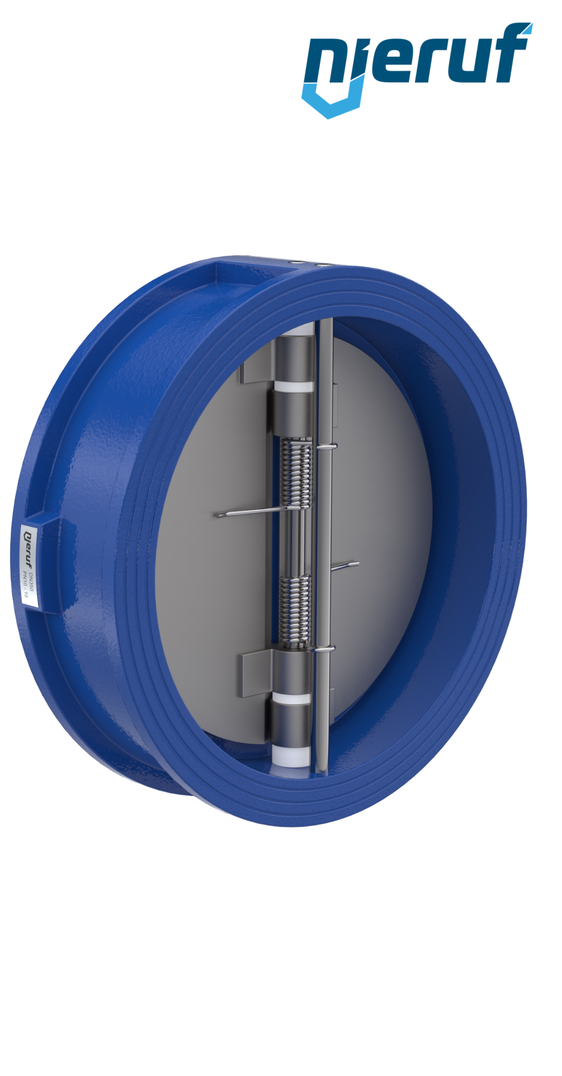 Klapa zwrotna dwuskrzydłowa DN350 uszczelnienie FKM (Viton) PN 10 DIN EN 1092-1 Forma B, korpus z żeliwa szarego ze skrzydłami ze stali nierdzewnej