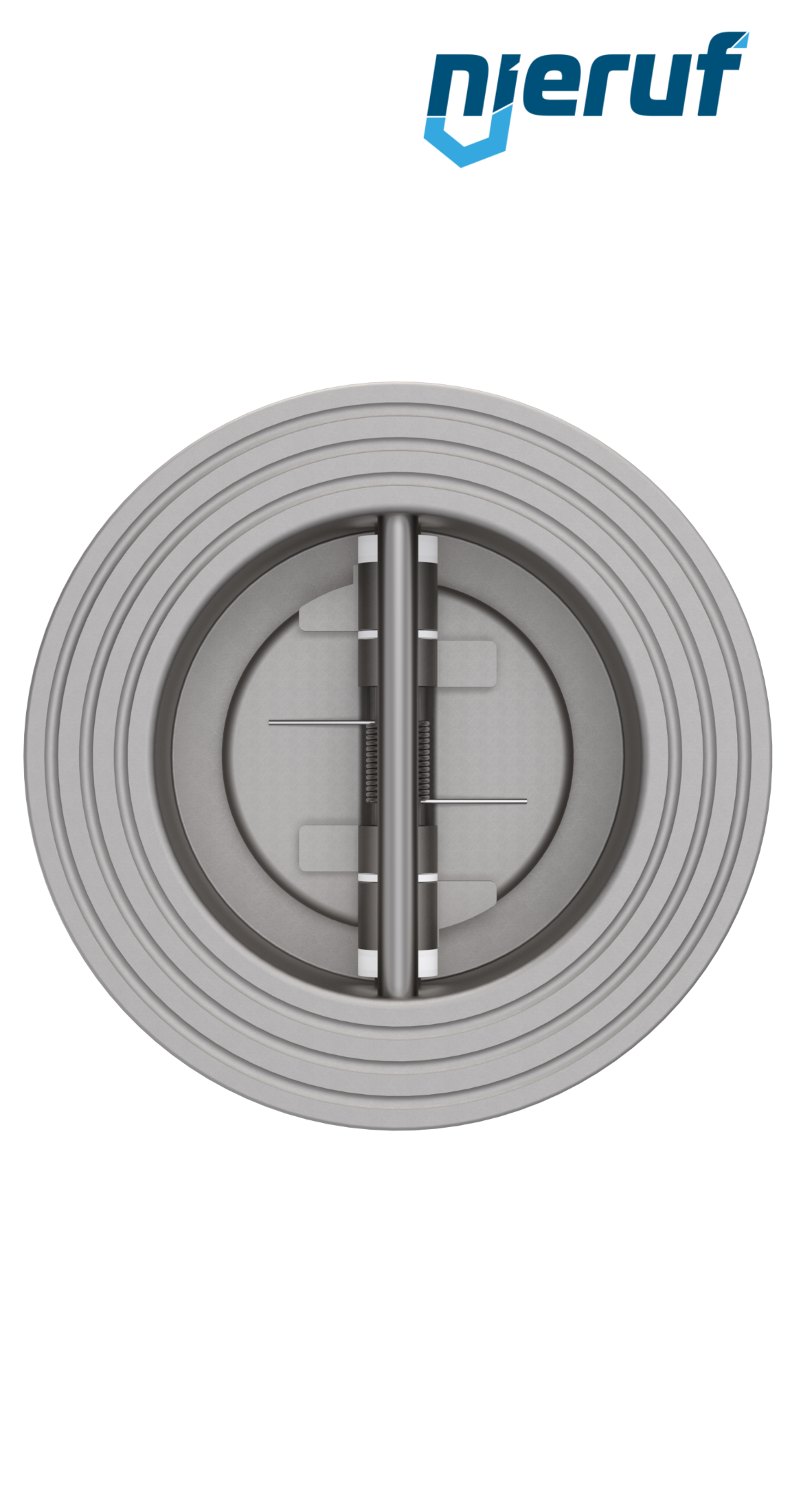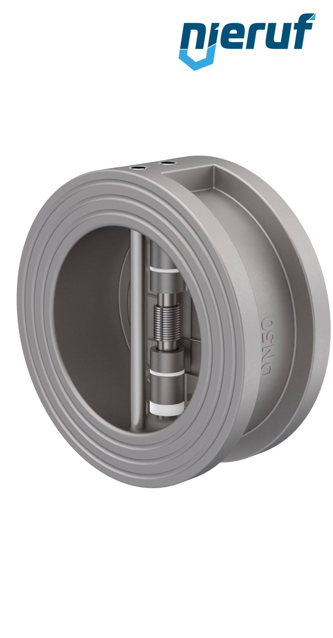 Klapa zwrotna dwuskrzydłowa DN50 uszczelnienie NBR PN 10/16/25/40 DIN EN 1092-1 Forma B, korpus i skrzydła ze stali nierdzewnej 1.4408