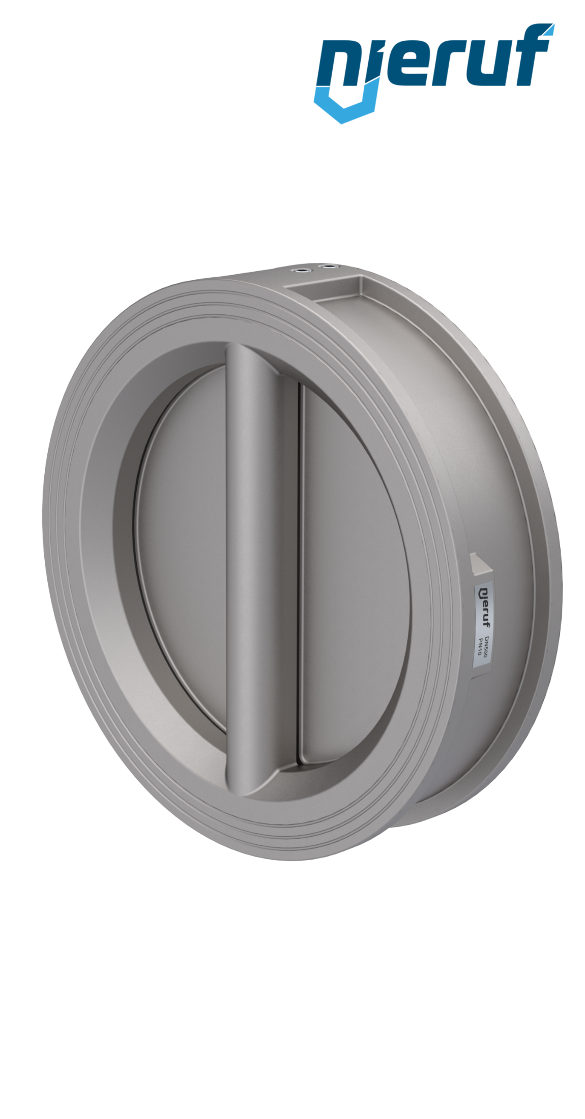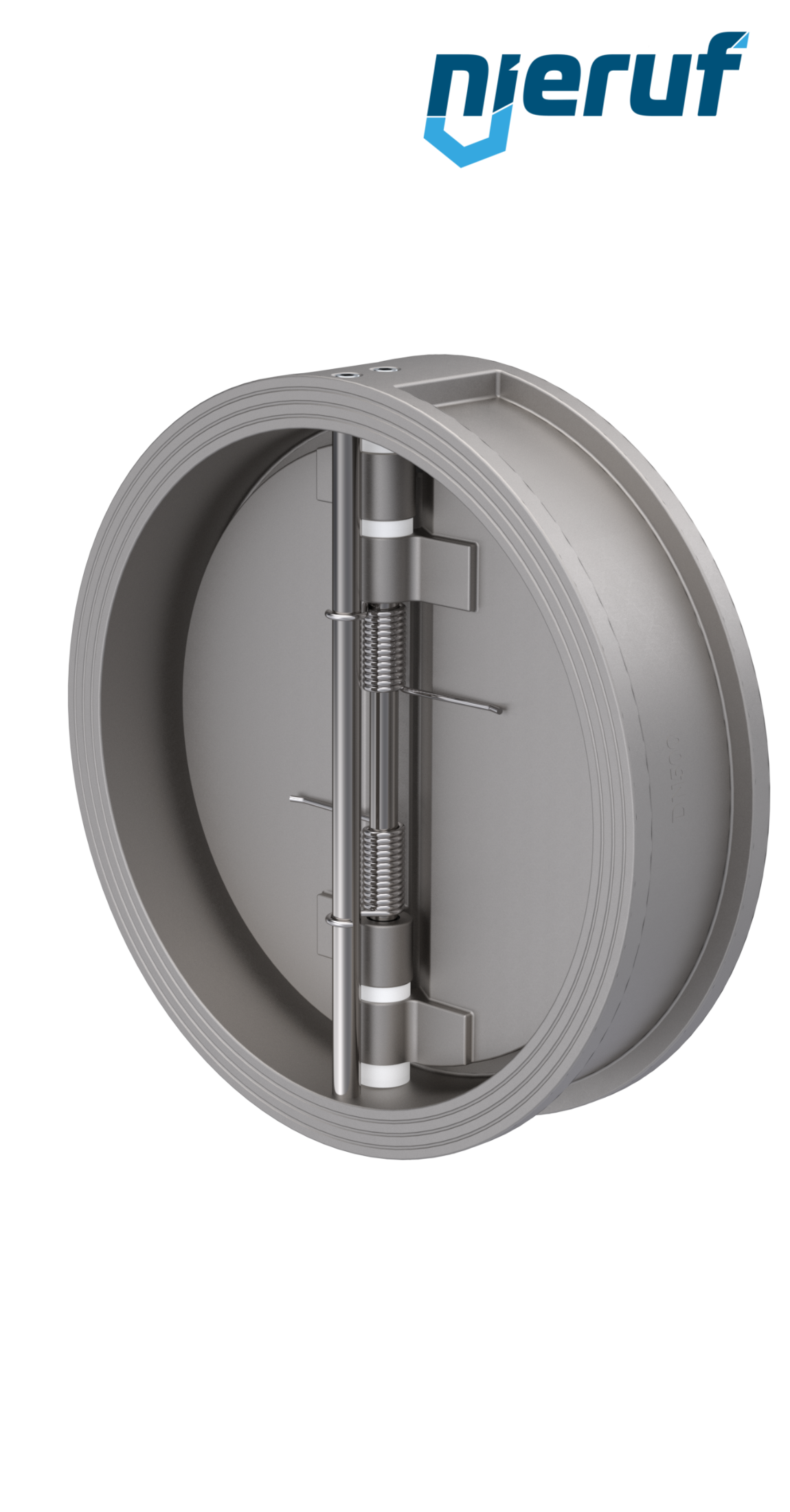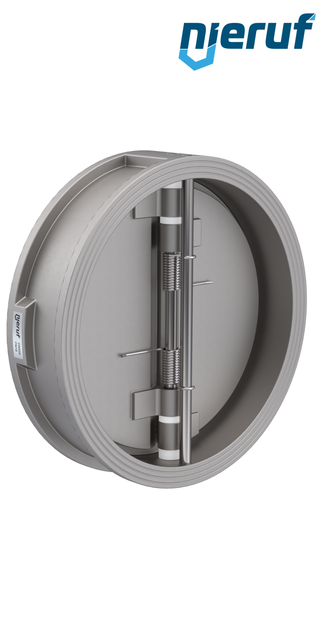 Klapa zwrotna dwuskrzydłowa DN500 uszczelnienie FKM (Viton) PN 10 DIN EN 1092-1 Forma B, korpus i skrzydła ze Stal nierdzewna 1.4408