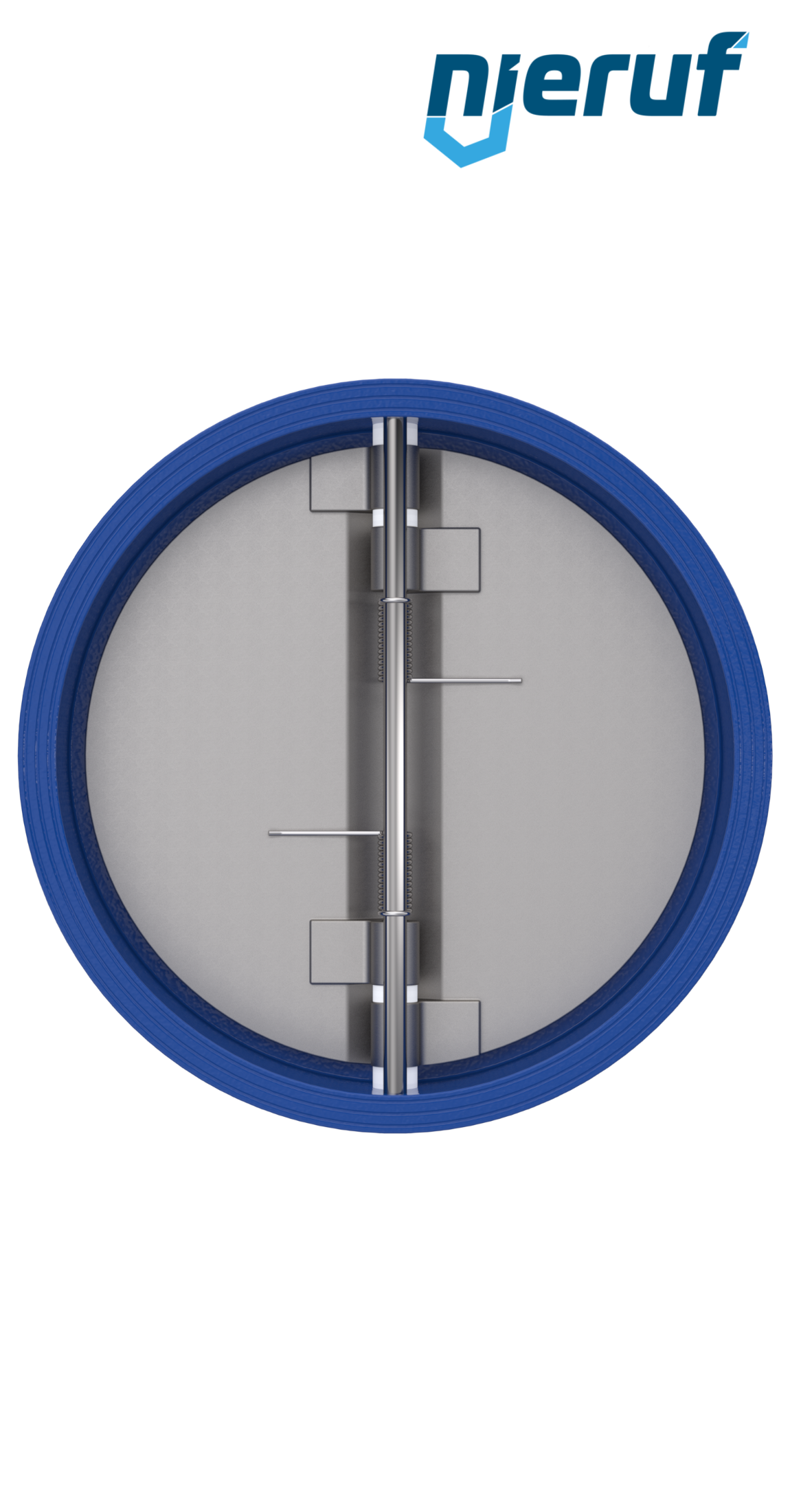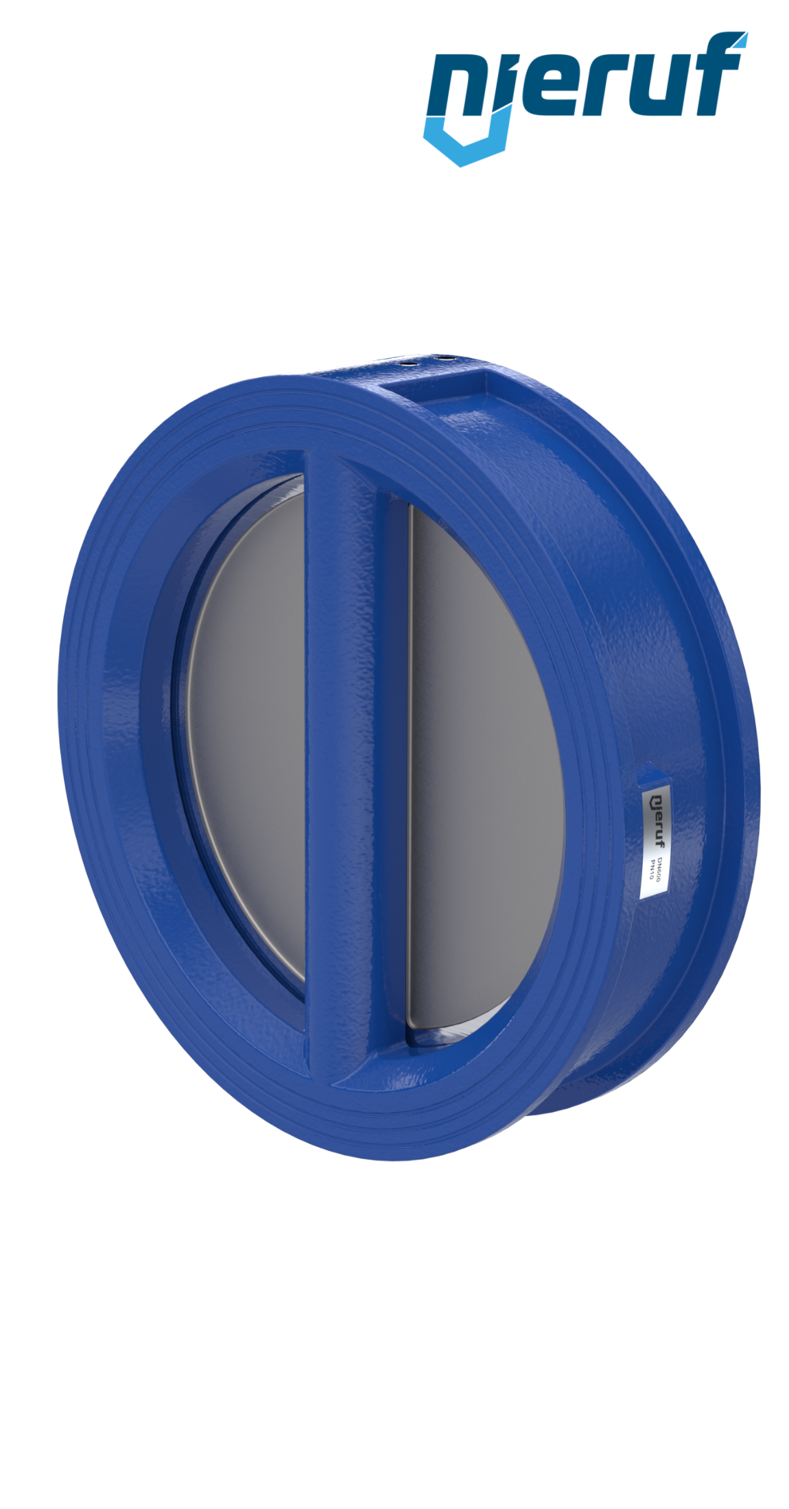 Klapa zwrotna dwuskrzydłowa DN600 uszczelnienie FKM (Viton) PN 10 DIN EN 1092-1 Forma B, korpus z żeliwa szarego ze skrzydłami ze stali nierdzewnej