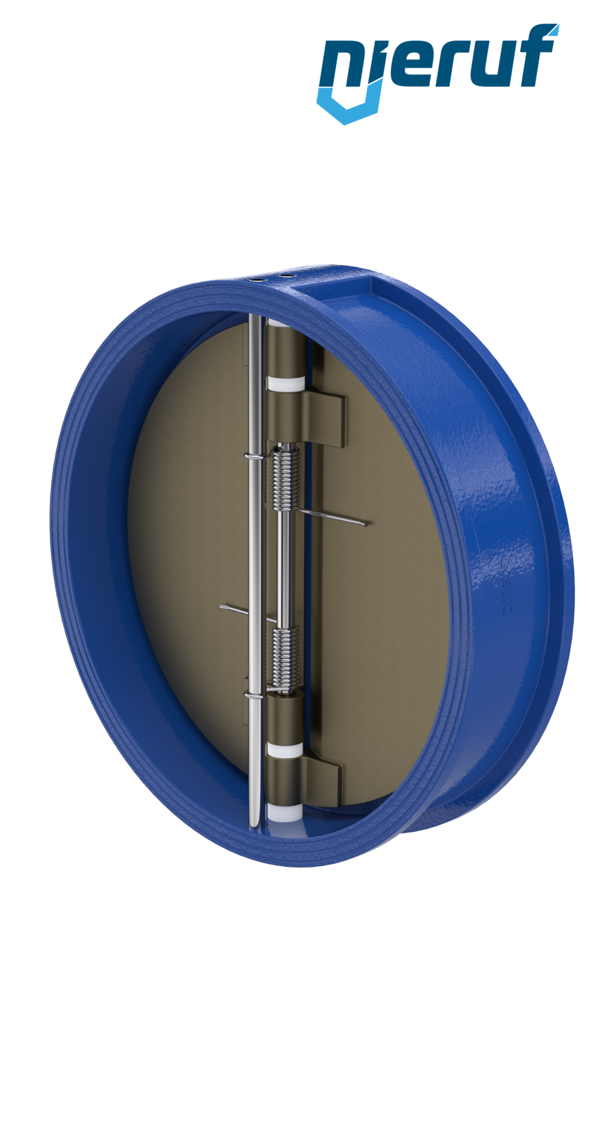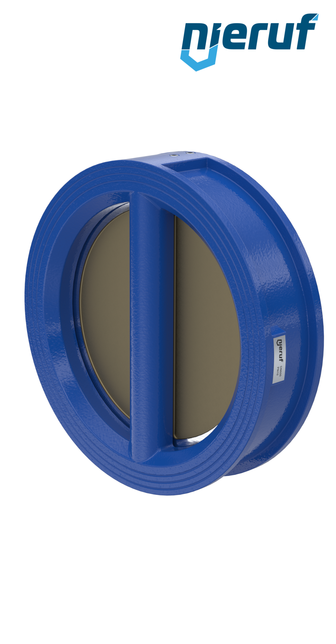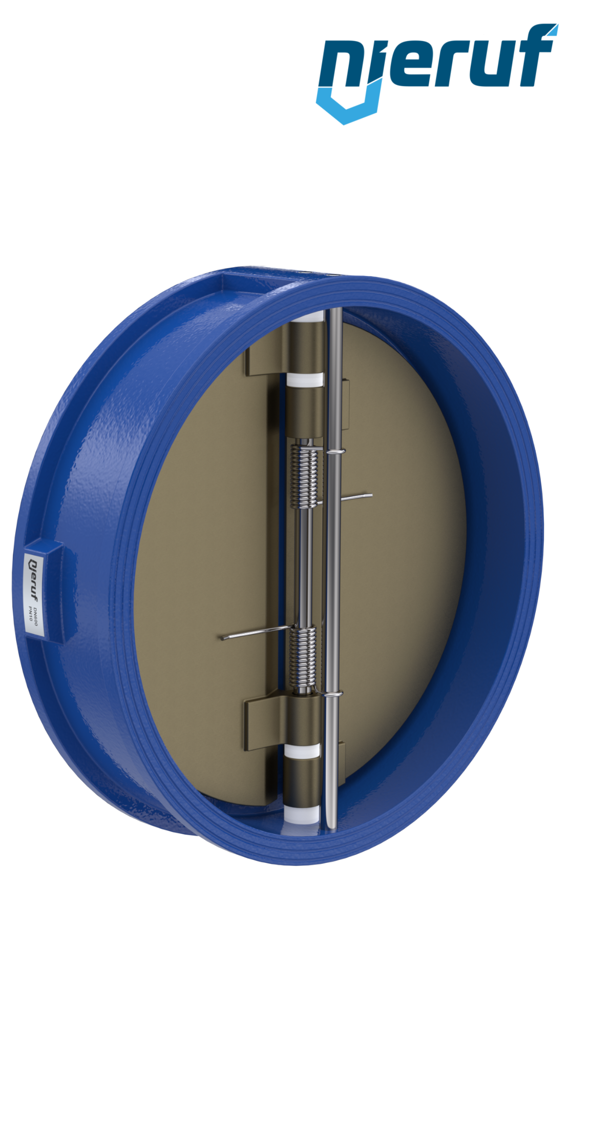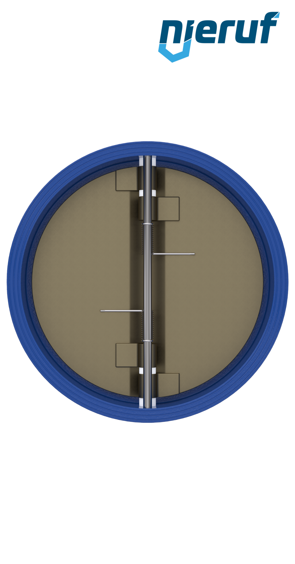 Klapa zwrotna dwuskrzydłowa DN600 uszczelnienie EPDM ASME B16.5 / ANSI 150, korpus z GGG40 z niebieską powłoką epoksydową 180µm, skrzydła z brązu aluminiowego