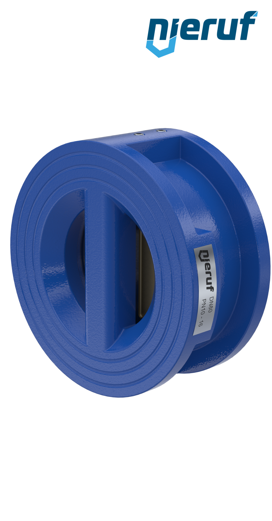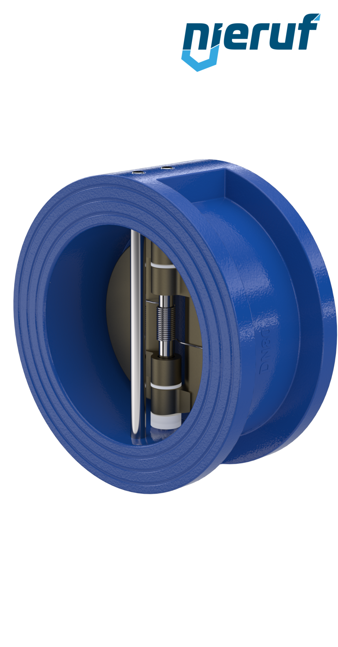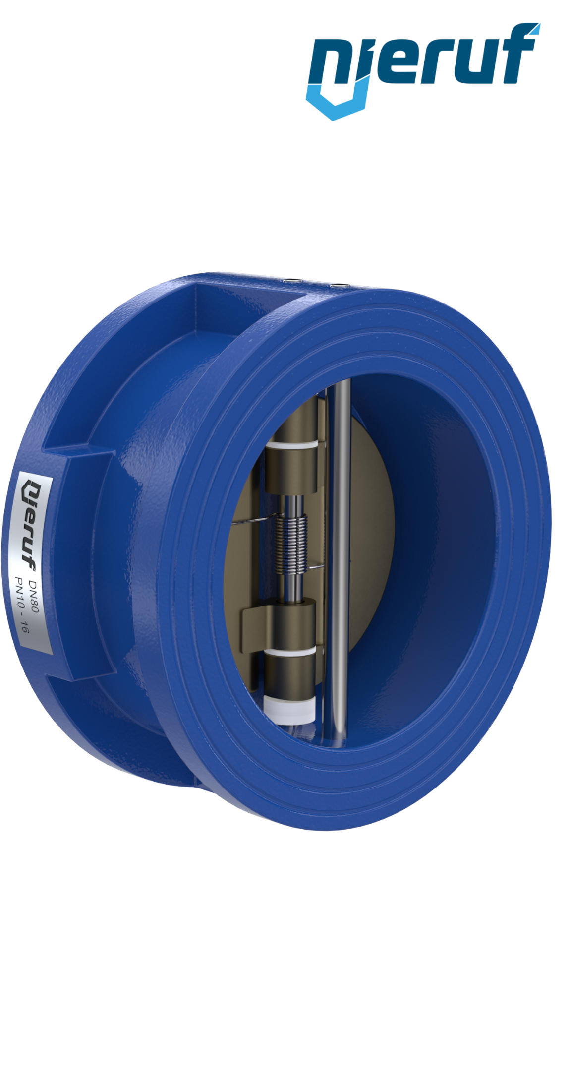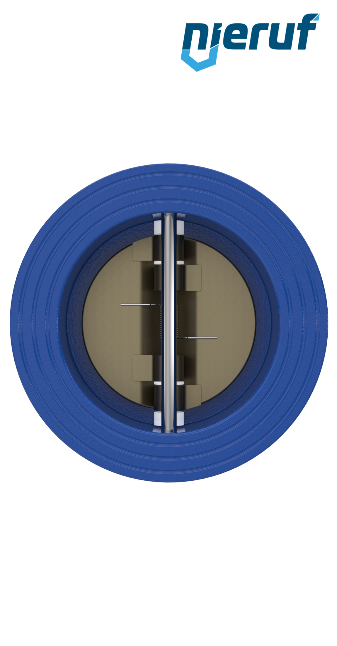 Klapa zwrotna dwuskrzydłowa DN80 uszczelnienie FKM ASME B16.5 / ANSI 150, korpus z GGG40 z niebieską powłoką epoksydową 180µm, skrzydła z brązu aluminiowego