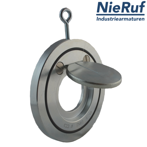 Klapa zwrotna międzykołnierzowa DN150 PN 10/16 DIN EN 1092-1 Forma B ze stali nierdzewnej 1.4408 uszczelnienie Metal do płynnych i gazowych mediów