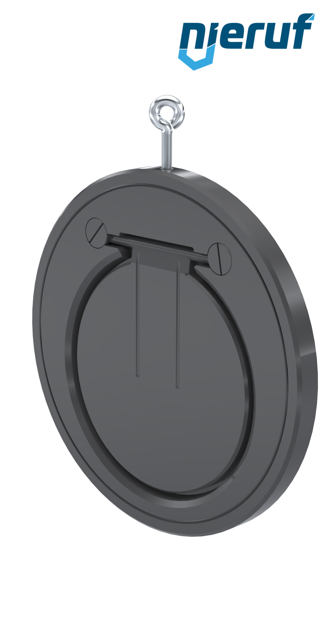 Klapa zwrotna międzykołnierzowa DN200 PN 10/16 DIN EN 1092-1 Forma B z plastiku PVC-U uszczelnienie FKM (Viton) do płynnych i gazowych mediów
