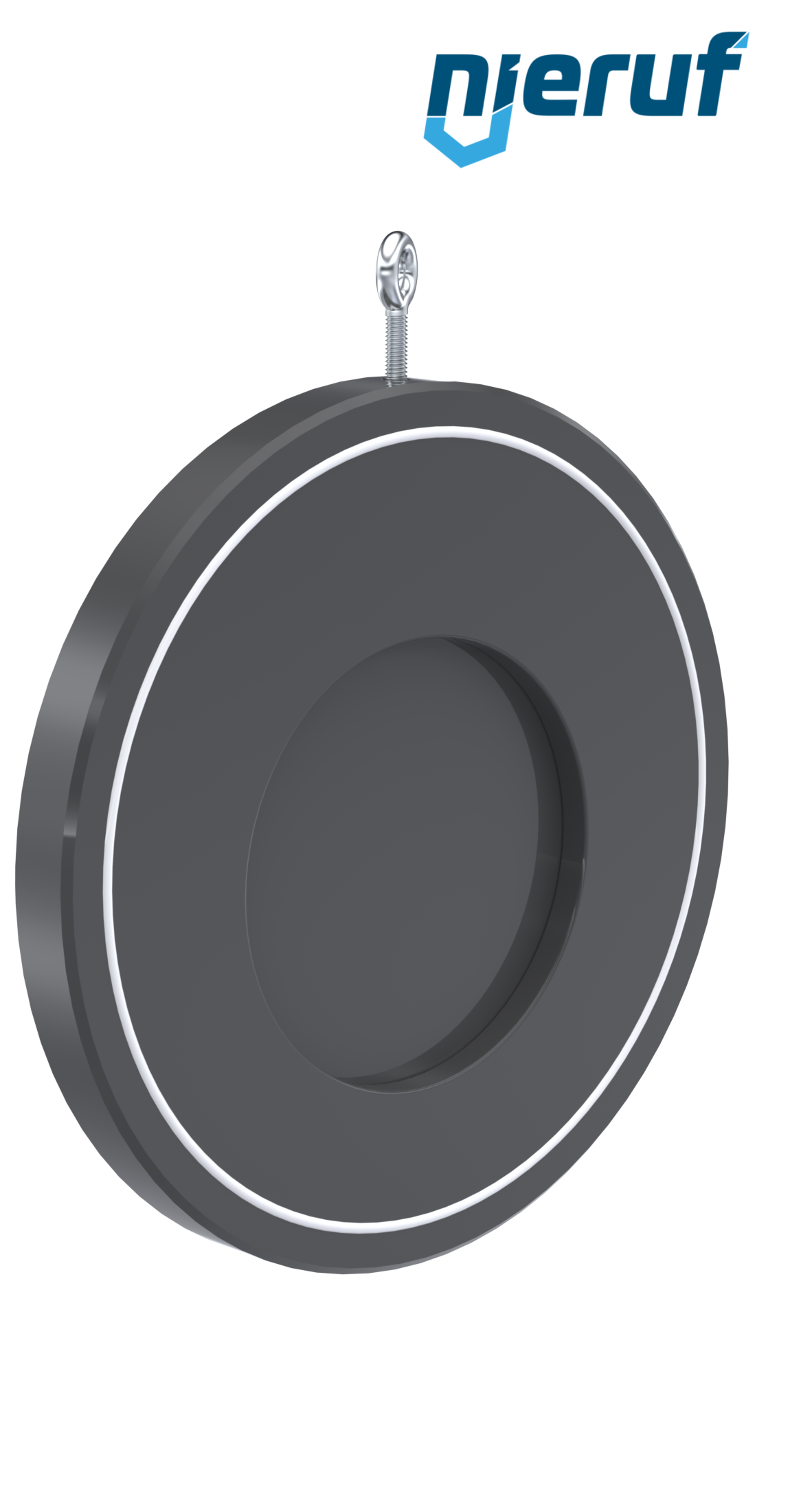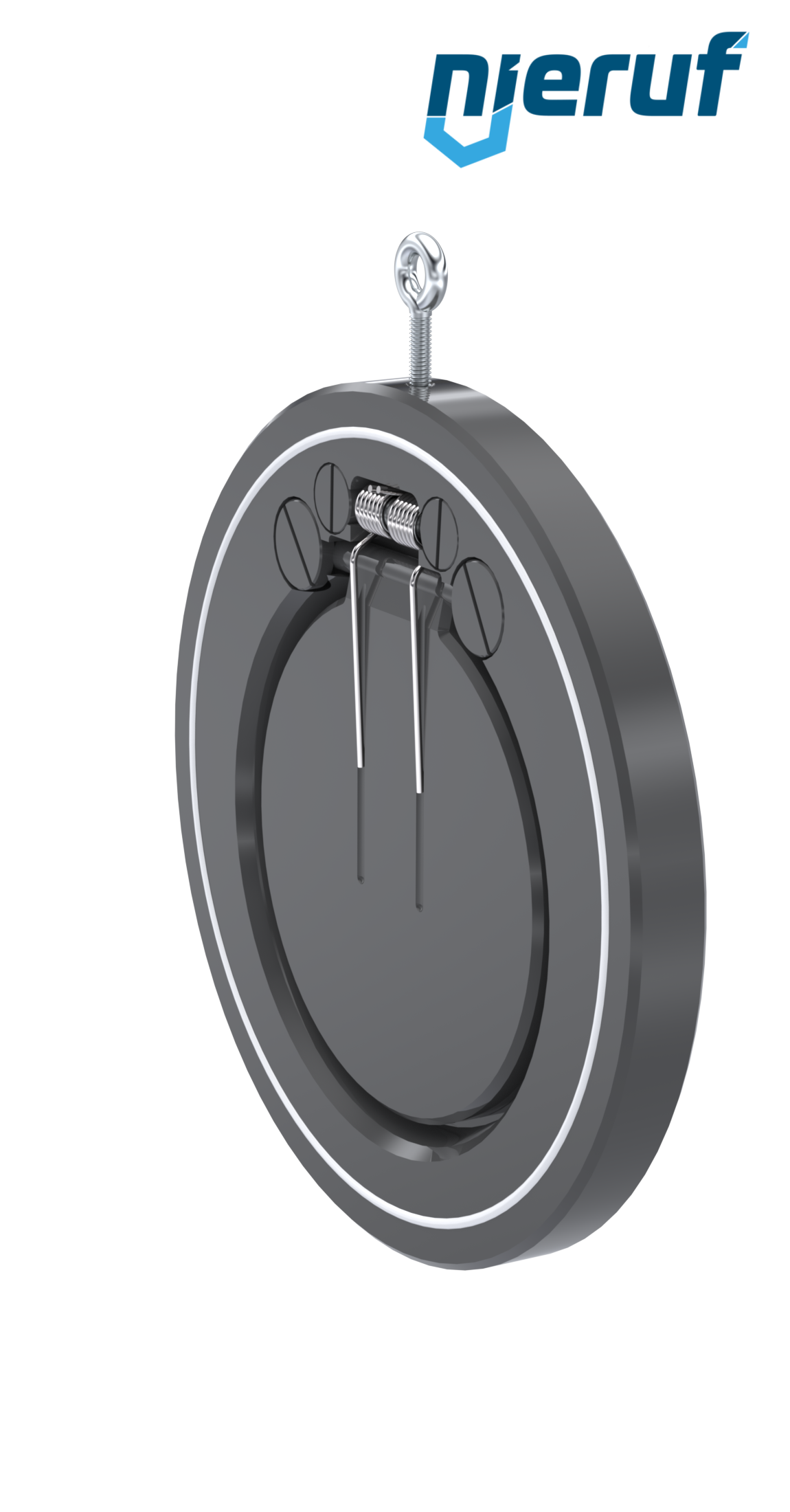 Klapa zwrotna międzykołnierzowa ze sprężyną DN150 PN 10/16 DIN EN 1092-1 Forma B z plastiku PVC-U uszczelnienie PTFE do płynnych i gazowych mediów