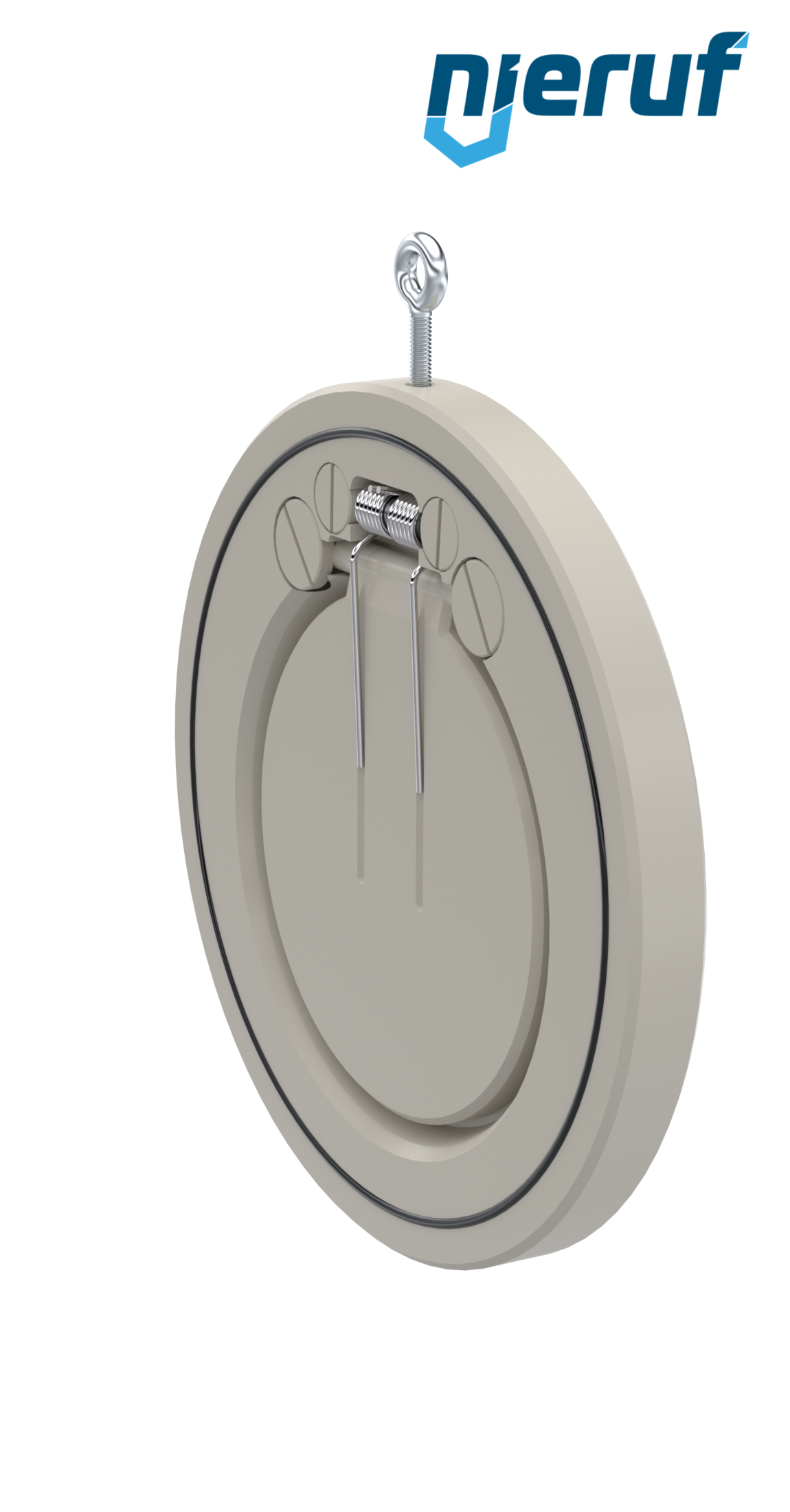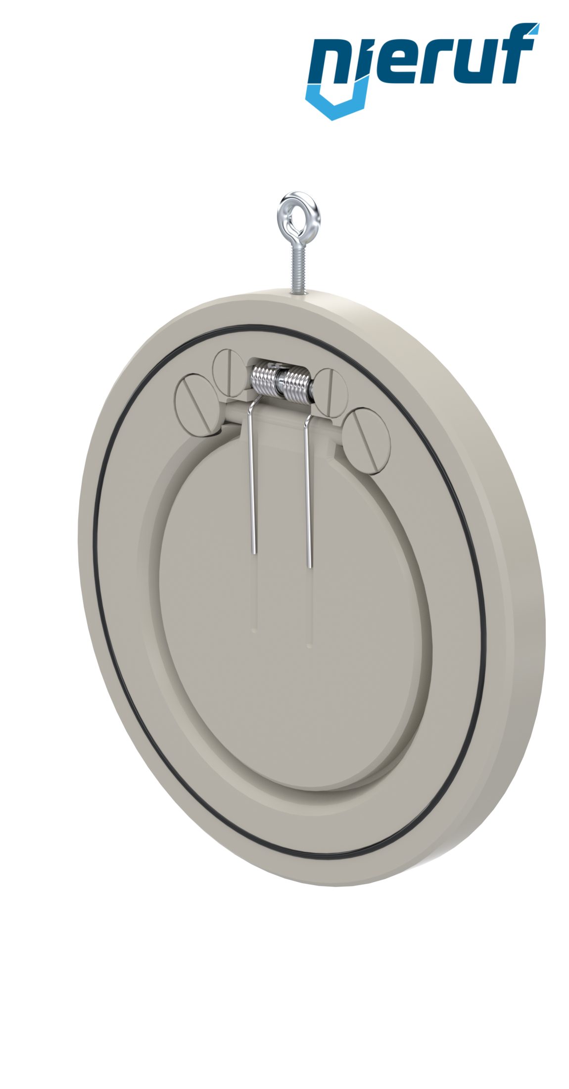 Klapa zwrotna międzykołnierzowa ze sprężyną DN150 PN 10/16 DIN EN 1092-1 Forma B z plastiku PP uszczelnienie EPDM do płynnych i gazowych mediów