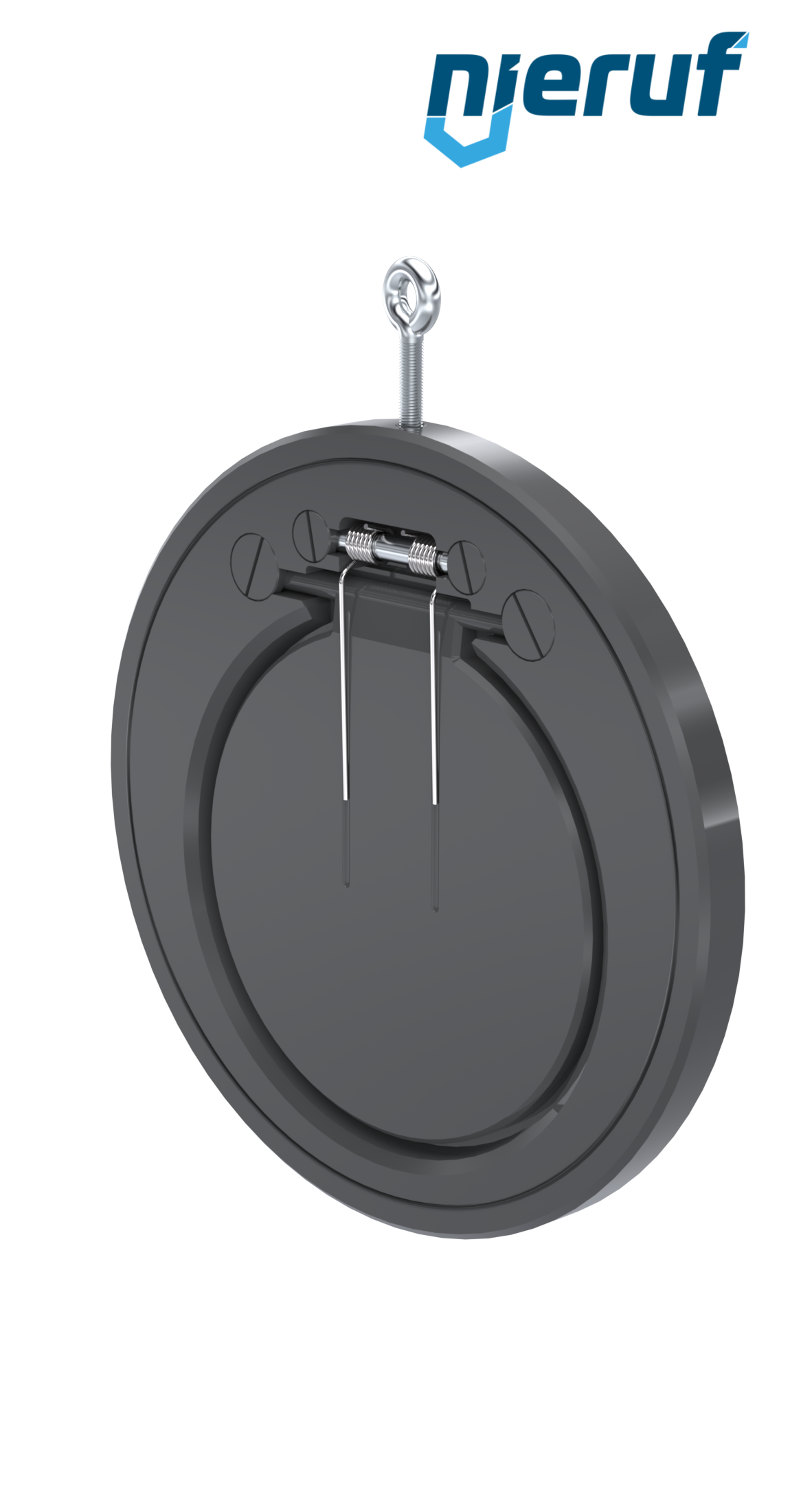 Klapa zwrotna międzykołnierzowa ze sprężyną DN200 PN 10/16 DIN EN 1092-1 Forma B z plastiku PVC-U uszczelnienie EPDM do płynnych i gazowych mediów