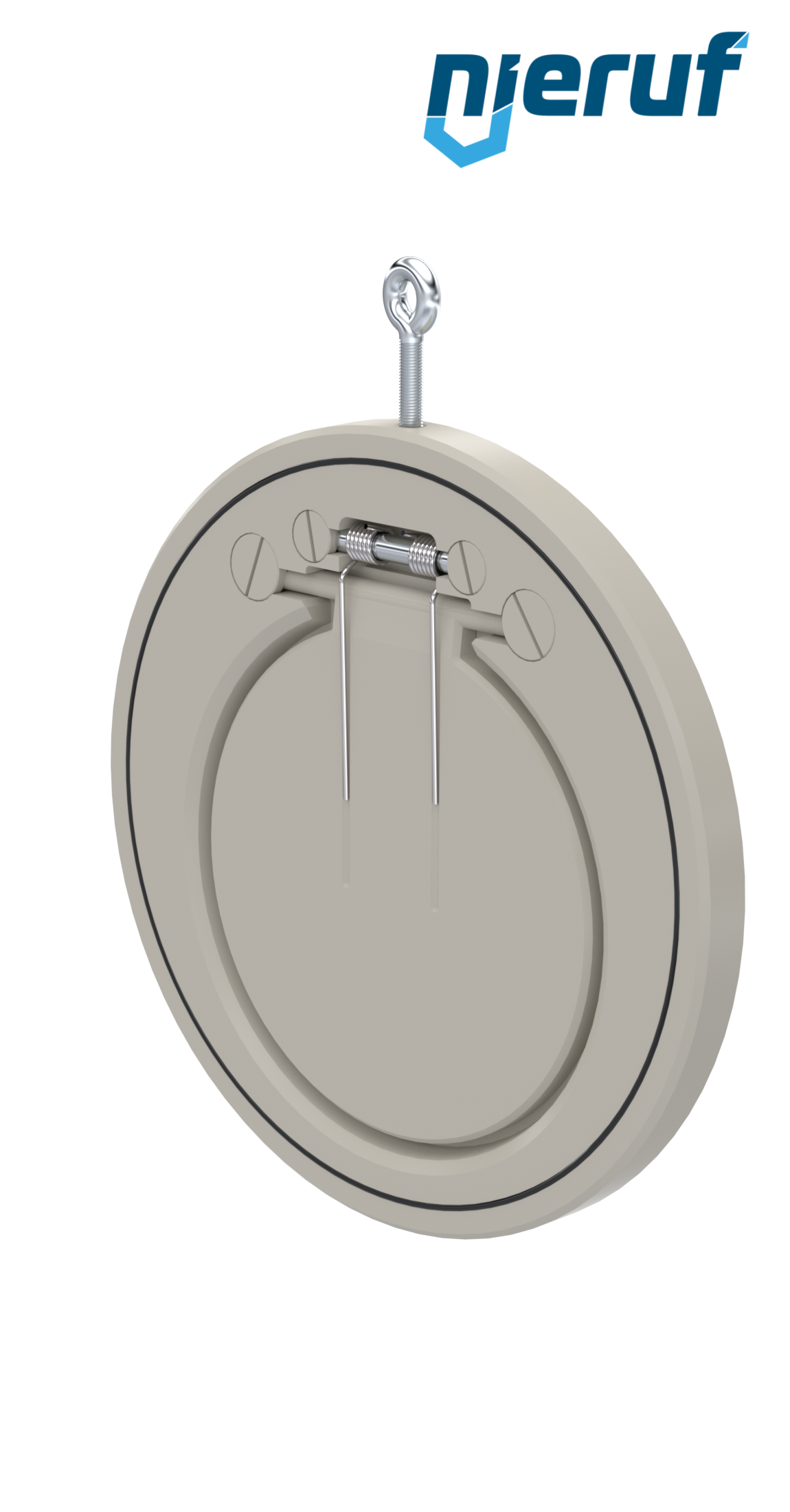 Klapa zwrotna międzykołnierzowa ze sprężyną DN200 PN 10/16 DIN EN 1092-1 Forma B z plastiku PP uszczelnienie NBR do płynnych i gazowych mediów