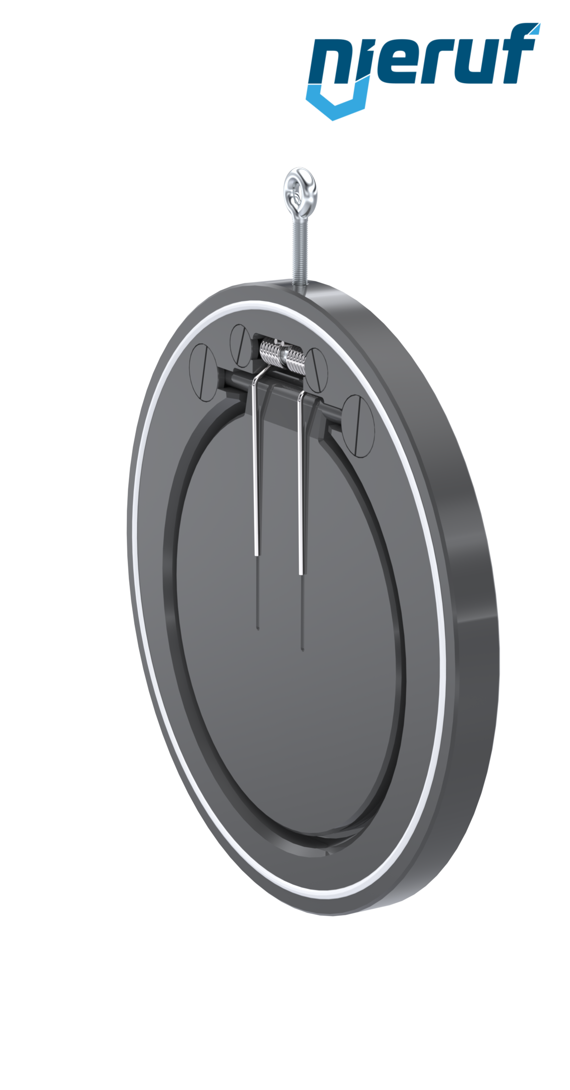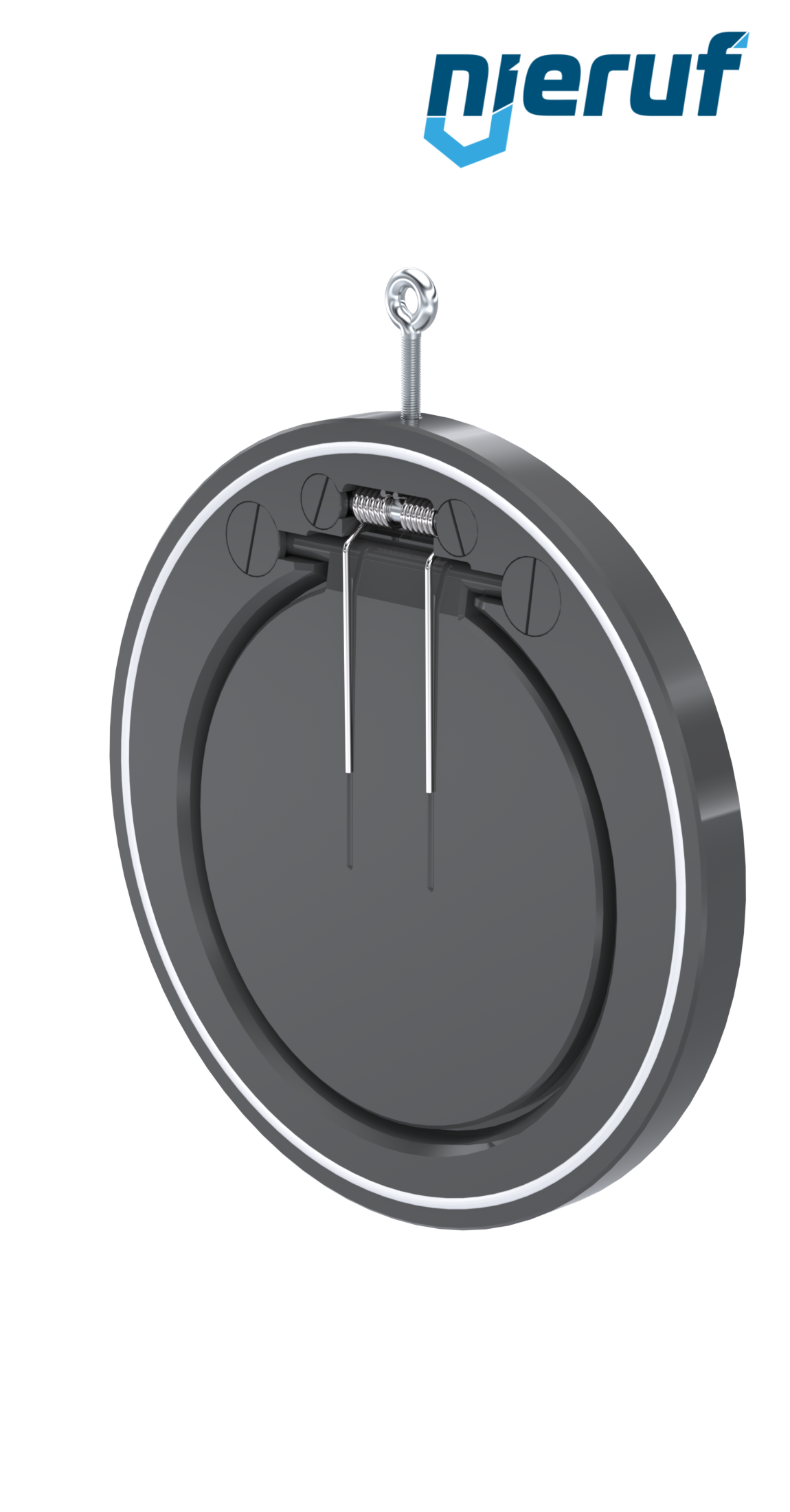 Klapa zwrotna międzykołnierzowa ze sprężyną DN250 PN 10/16 DIN EN 1092-1 Forma B z plastiku PVC-U uszczelnienie PTFE do płynnych i gazowych mediów