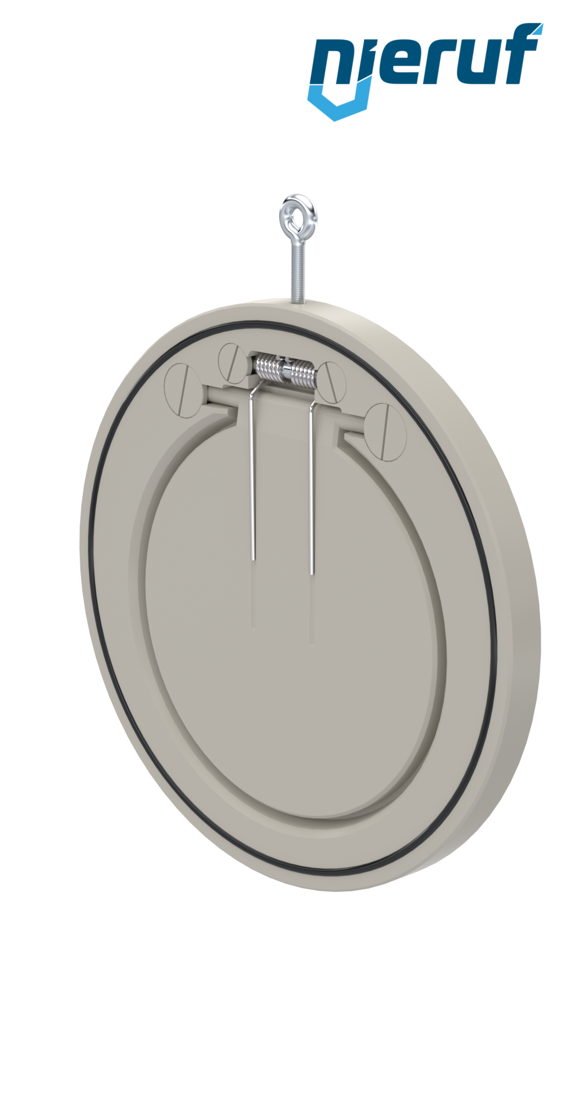 Klapa zwrotna międzykołnierzowa ze sprężyną DN250 PN 10/16 DIN EN 1092-1 Forma B z plastiku PP uszczelnienie EPDM do płynnych i gazowych mediów