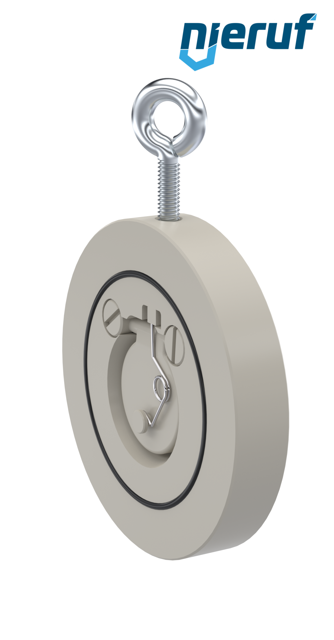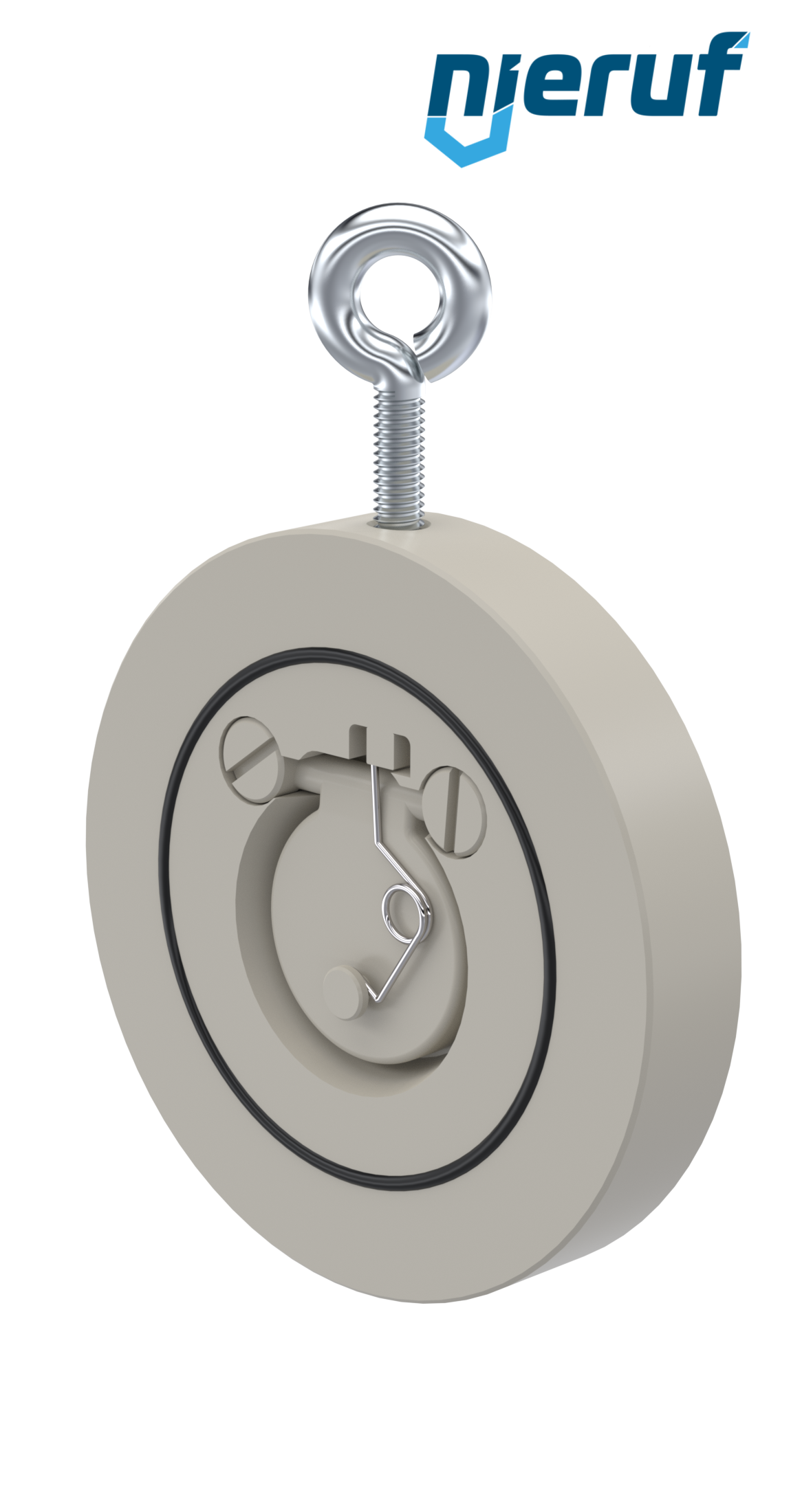 Klapa zwrotna międzykołnierzowa ze sprężyną DN32 PN 10/16 DIN EN 1092-1 Forma B z plastiku PP uszczelnienie EPDM do płynnych i gazowych mediów