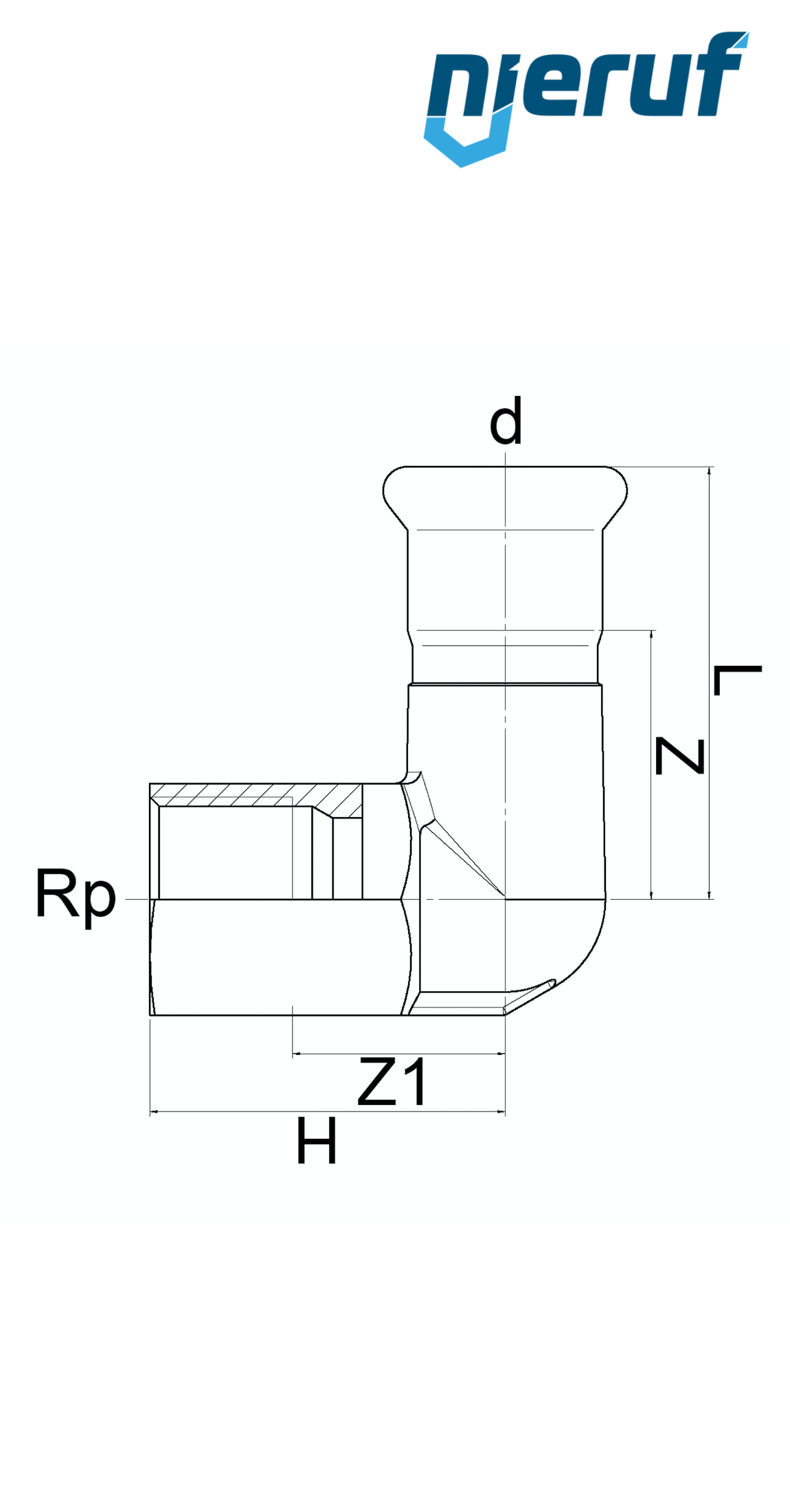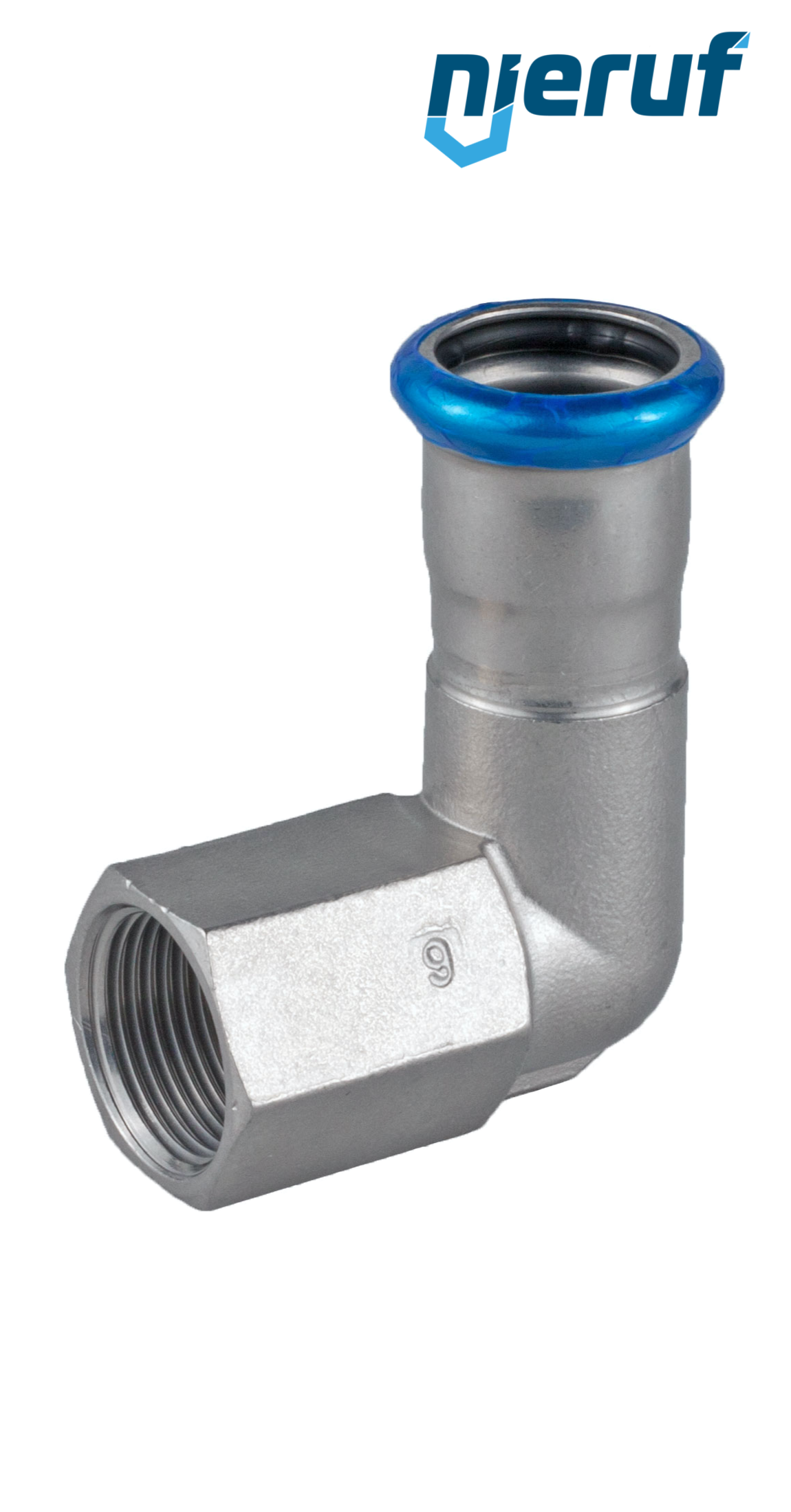 Kolanko przejściowe PF01-05-03 z przyłączem zaciskanym W DN20 - 22,0 mm, Gwint wewnętrzny 3/4" cala ze stali nierdzewnej do płynnych i gazowych mediów