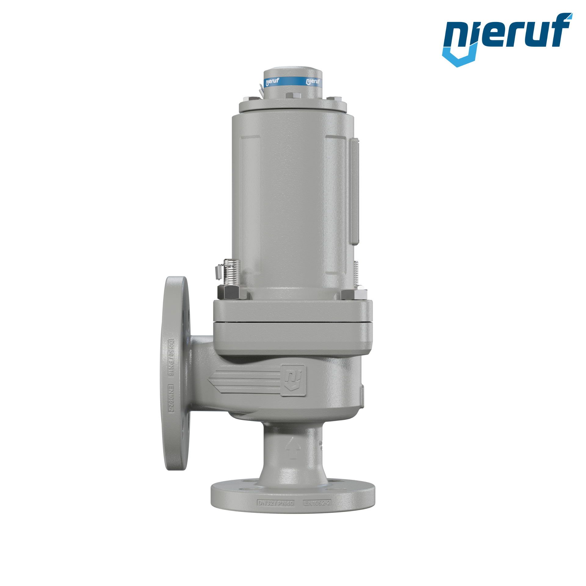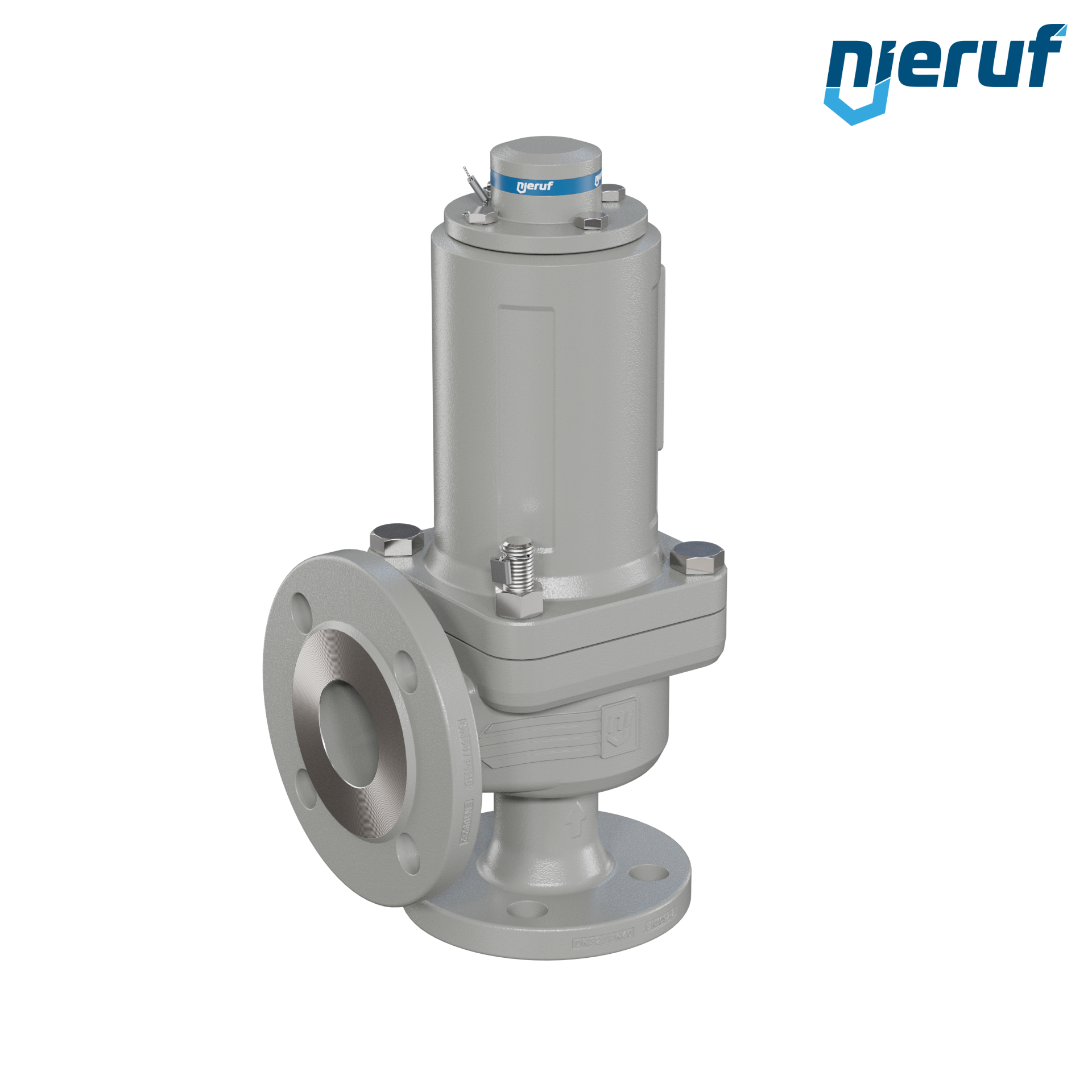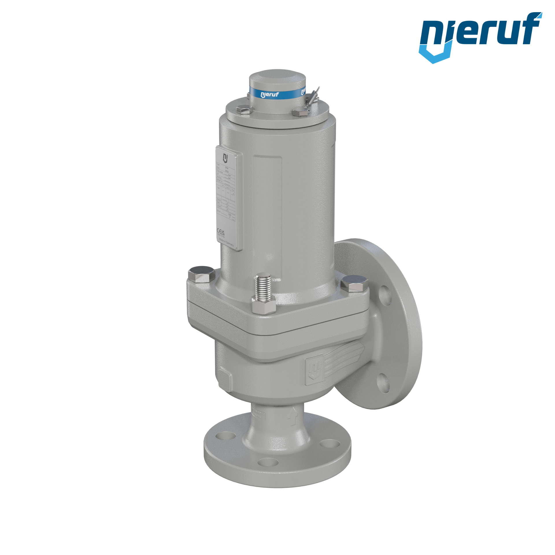 Zawór bezpieczeństwa kołnierzowy gazoszczelny DN32/DN50 SF06 z żeliwa sferoidalnego do płynnych i gazowych mediów DIN EN 5.3103 uszczelnienie PTFE zakres ciśnienia 0,2 - 40,0 bar bez podnoszenia