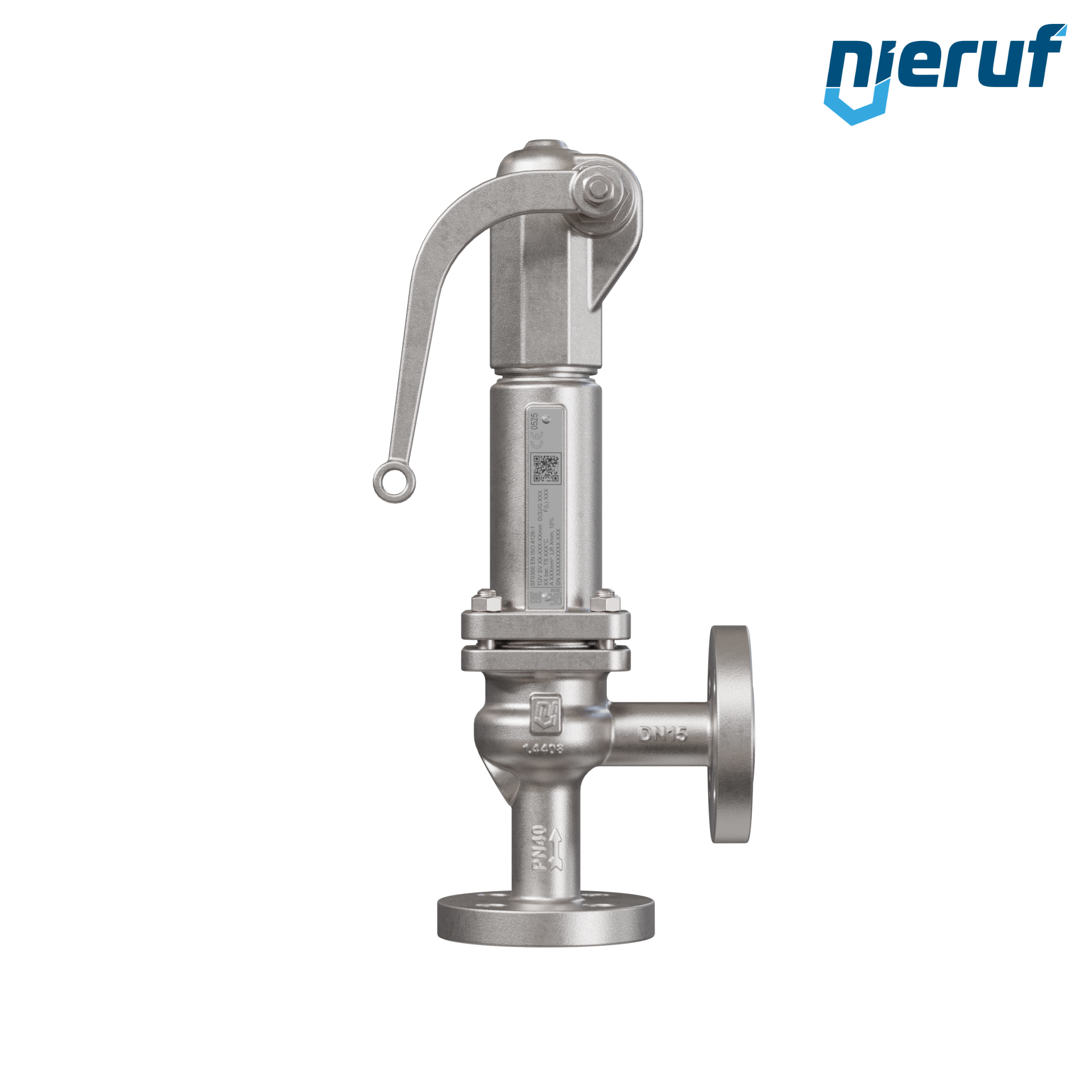 Zawór bezpieczeństwa kołnierzowy DN15/DN15 SF03, Stal nierdzewna 1.4408 Metal, Dźwignia