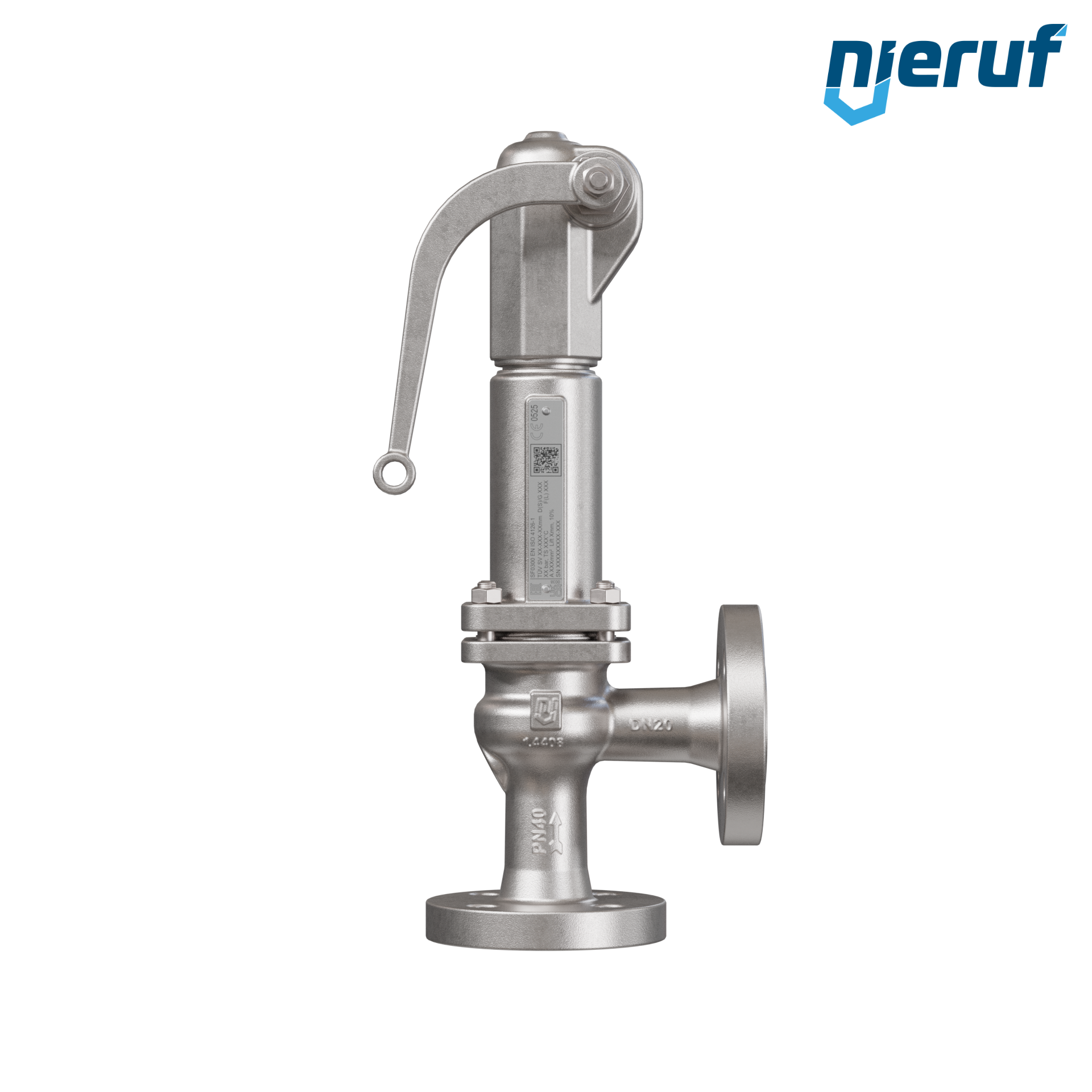 Zawór bezpieczeństwa kołnierzowy DN20/DN20 SF03, Stal nierdzewna 1.4408 EPDM, Dźwignia