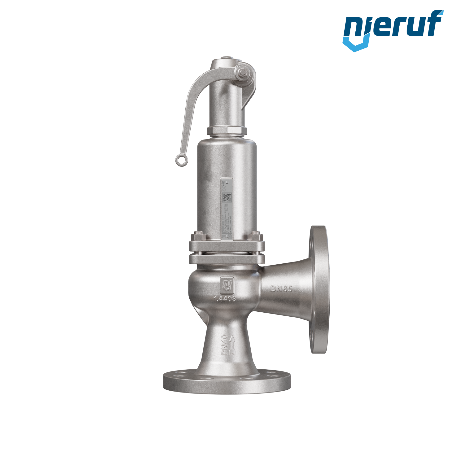 Zawór bezpieczeństwa kołnierzowy DN65/DN65 SF03, Stal nierdzewna 1.4408 FPM, Dźwignia