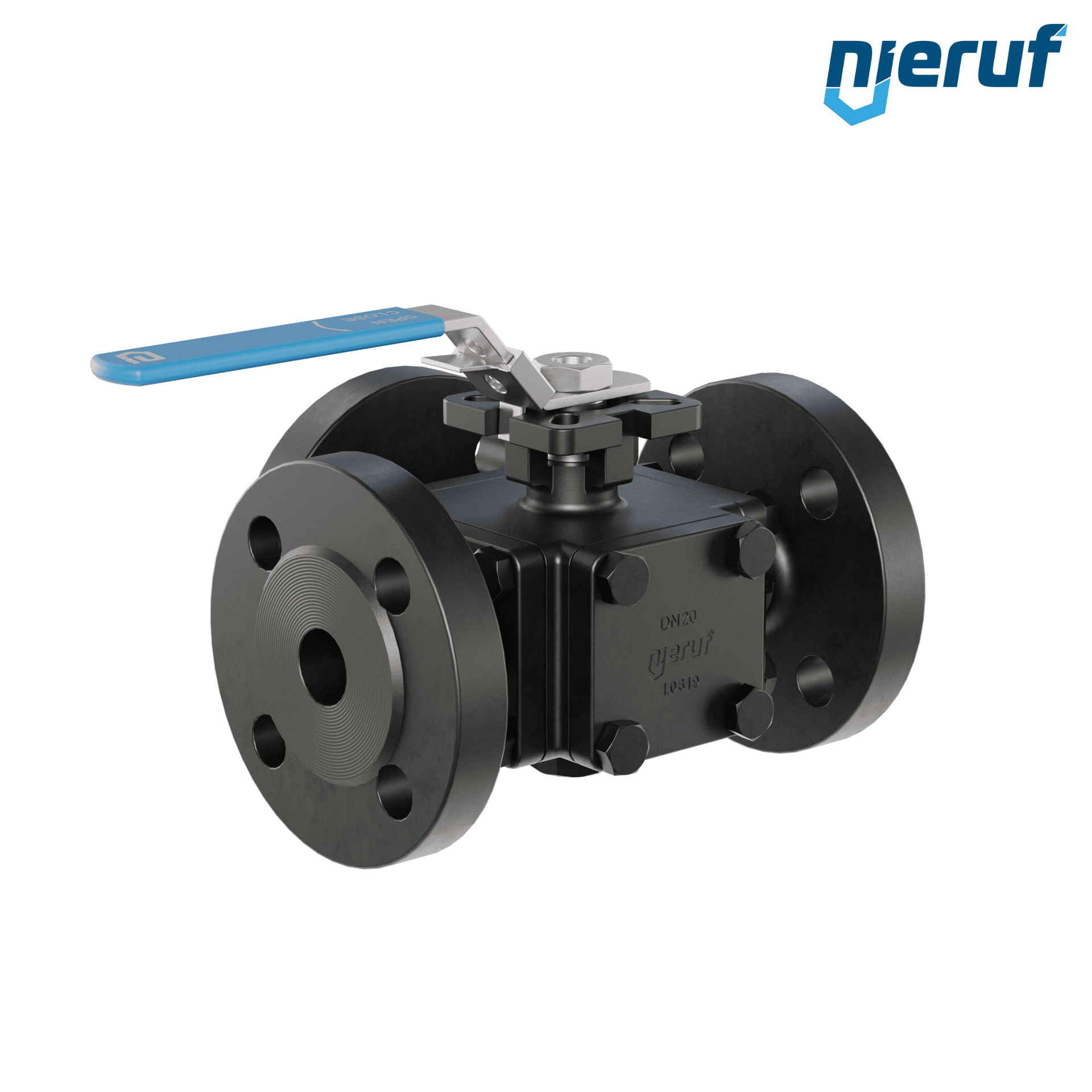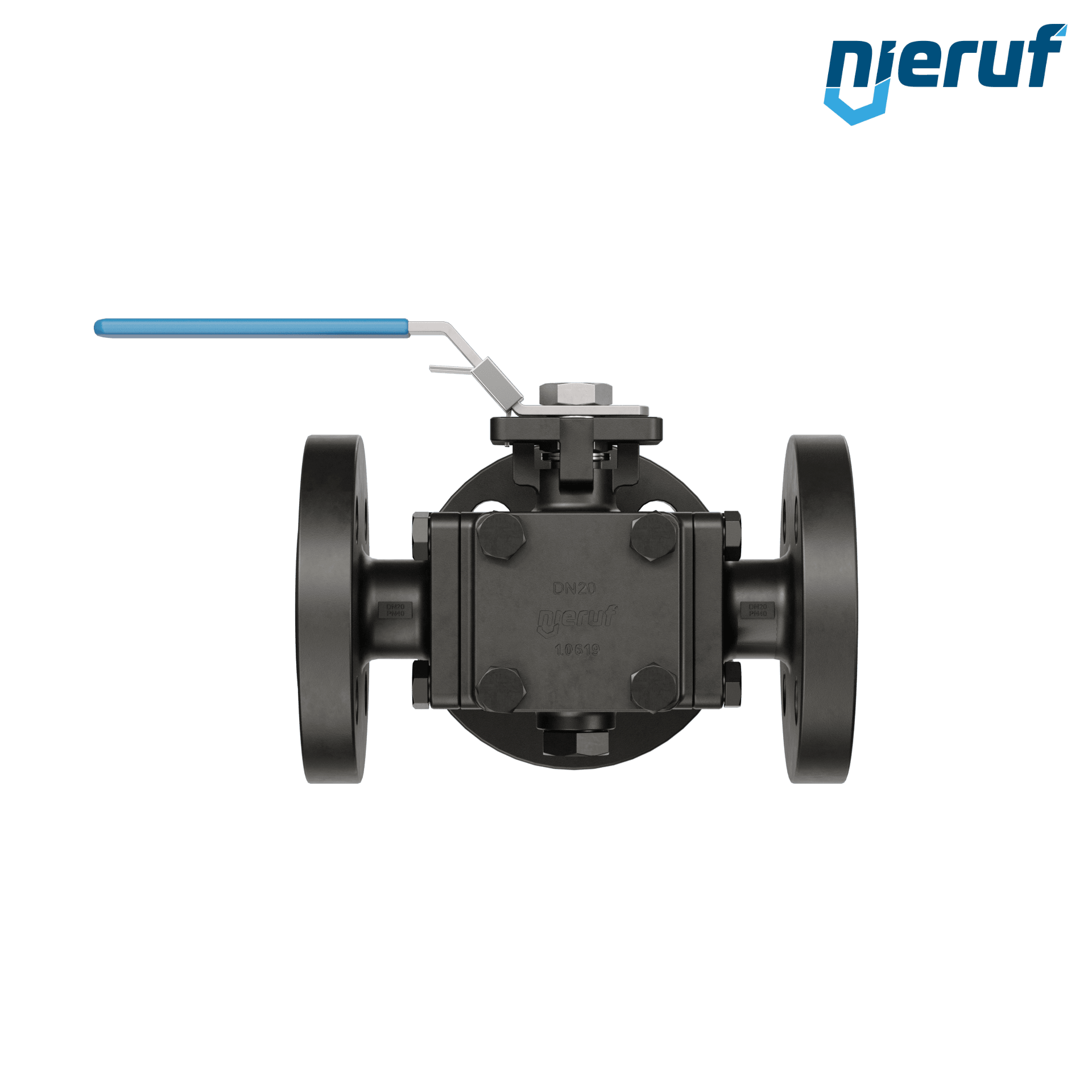 3 drożny kołnierzowy zawór kulowy DN20 PN16/40 FK08, korpus ze staliwa 1.0619, kula ze staliwa 1.4308, uszczelka TFM 1600/PTFE z otworem L