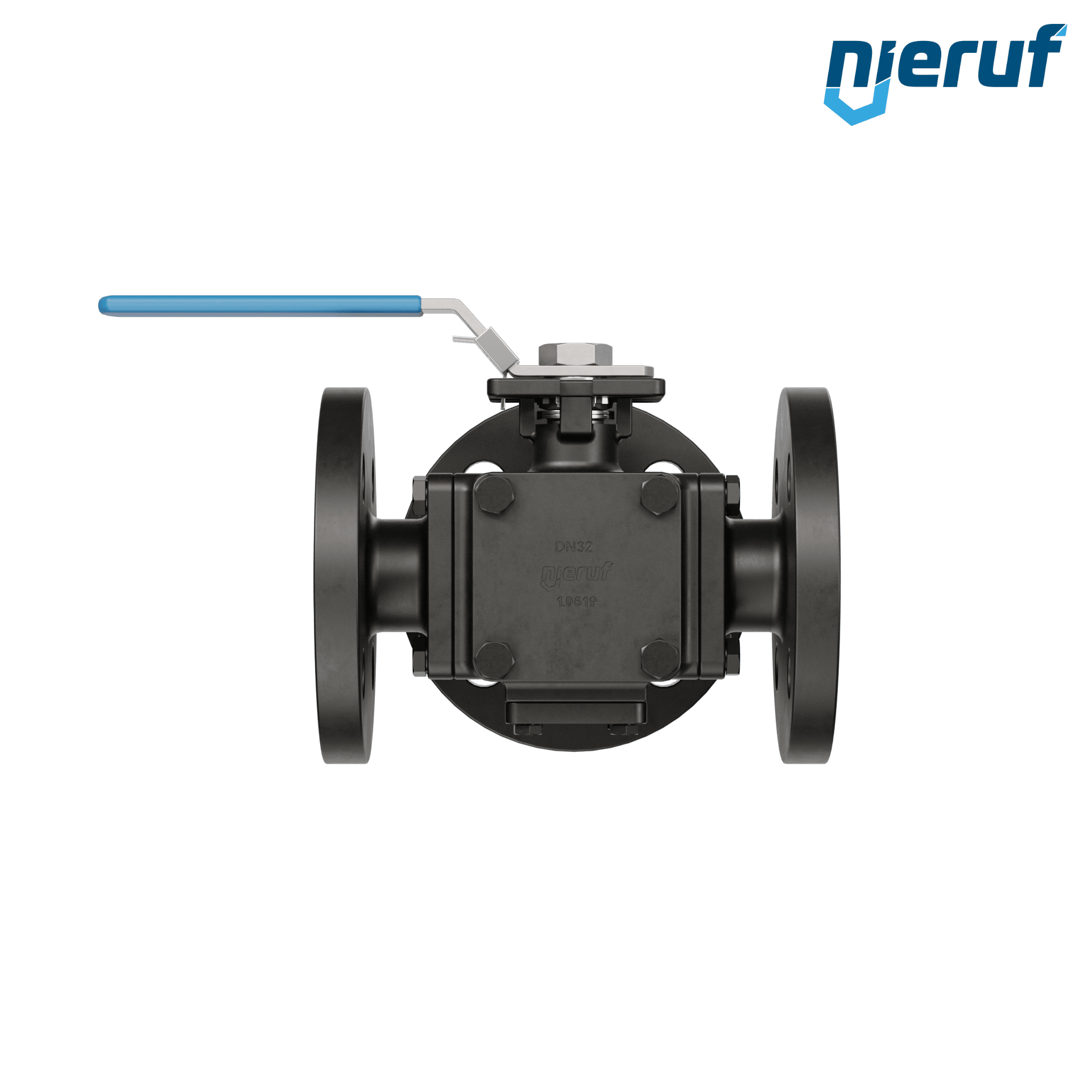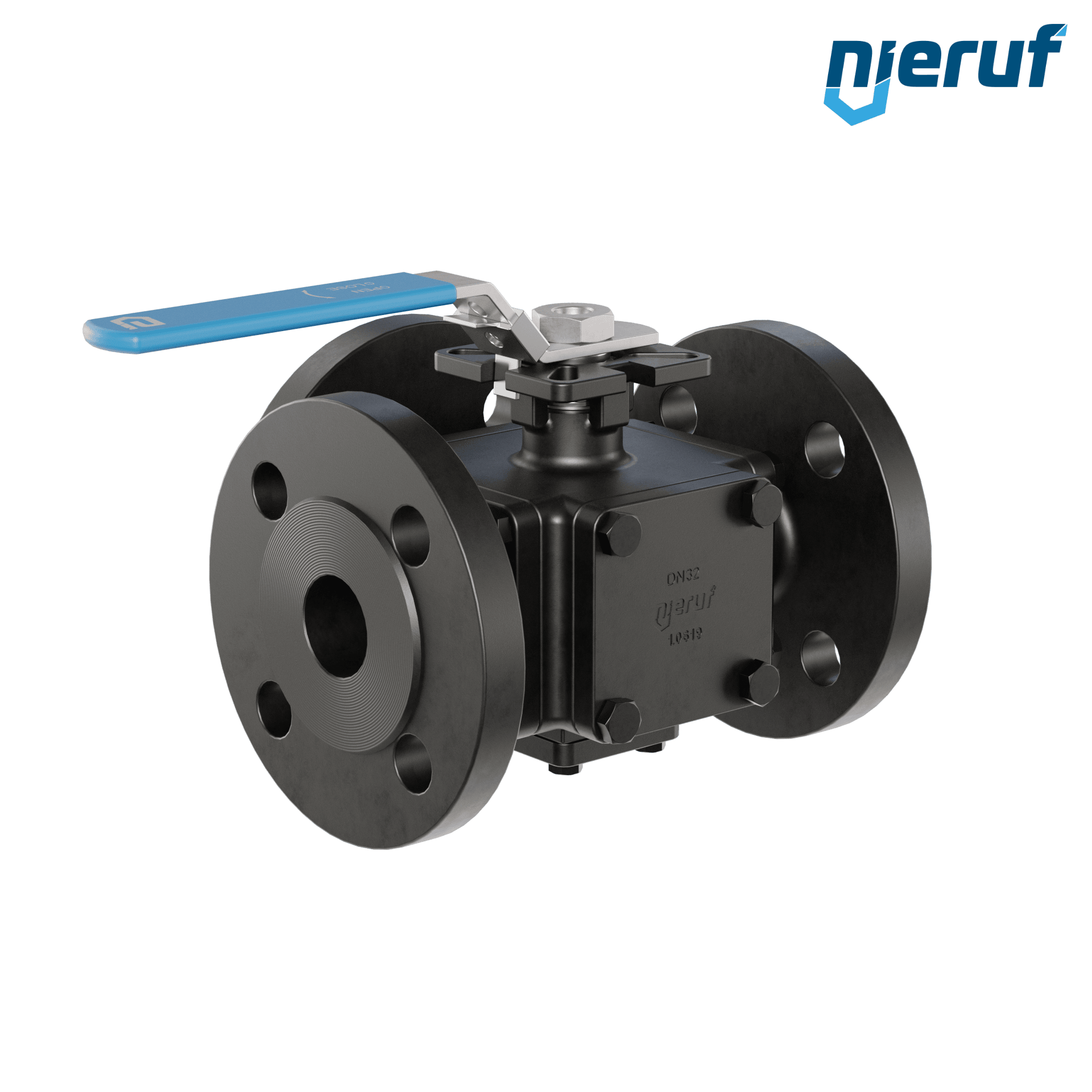 3 drożny kołnierzowy zawór kulowy DN32 PN16/40 FK08, korpus ze staliwa 1.0619, kula ze staliwa 1.4308, uszczelka TFM 1600/PTFE z otworem L