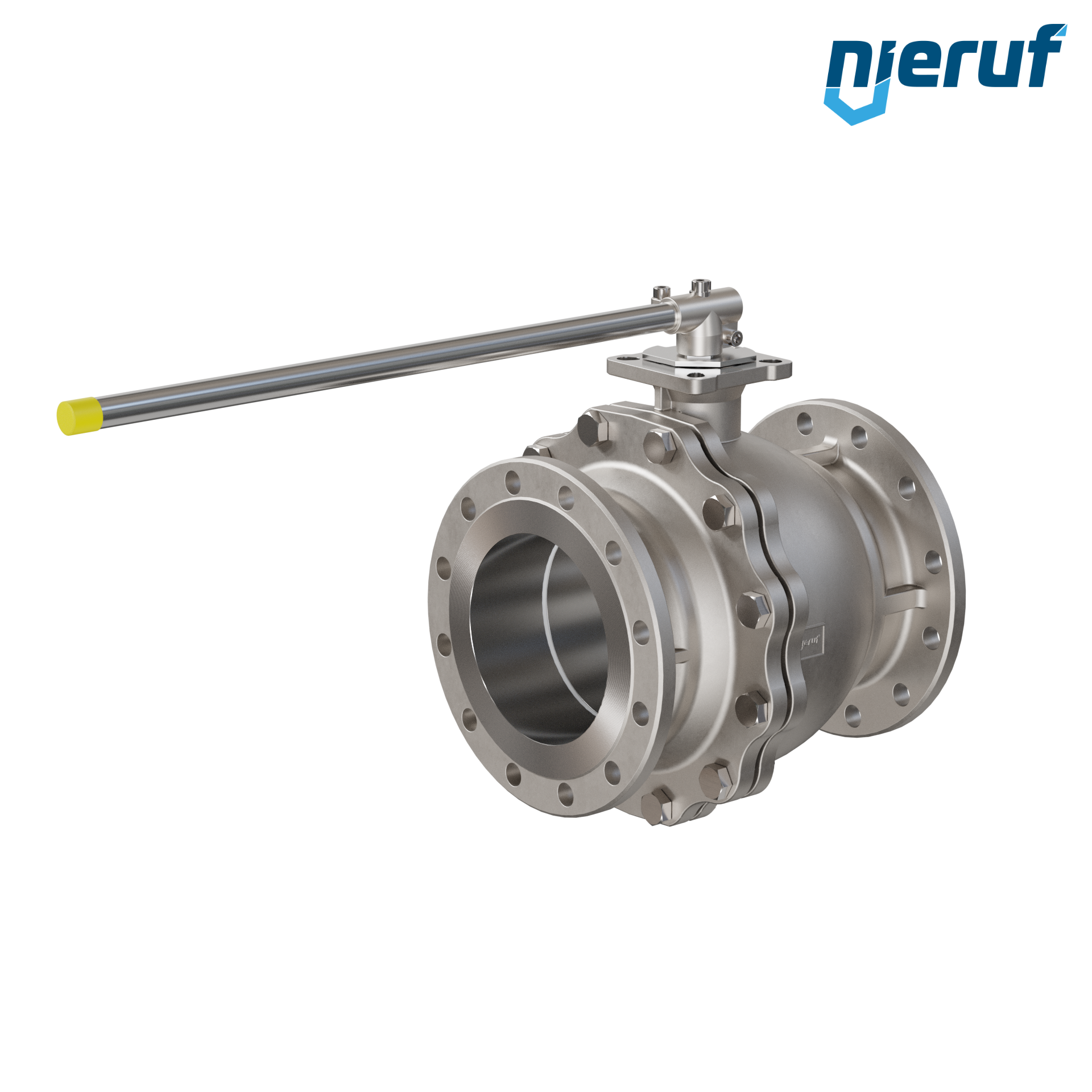 Ten wysokiej jakości zawór kulowy ze stali nierdzewnej ma trzpień odporny na wydmuchiwanie z uszczelnieniem FKM/PTFE/grafitowym i nadaje się do mediów płynnych i gazowych. Korpus jest dwuczęściowy z kołnierzem montażowym zgodnym z normą DIN ISO 5211 i dźwignią wykonaną ze stali nierdzewnej. Z dopuszczeniem Fire-Safe.