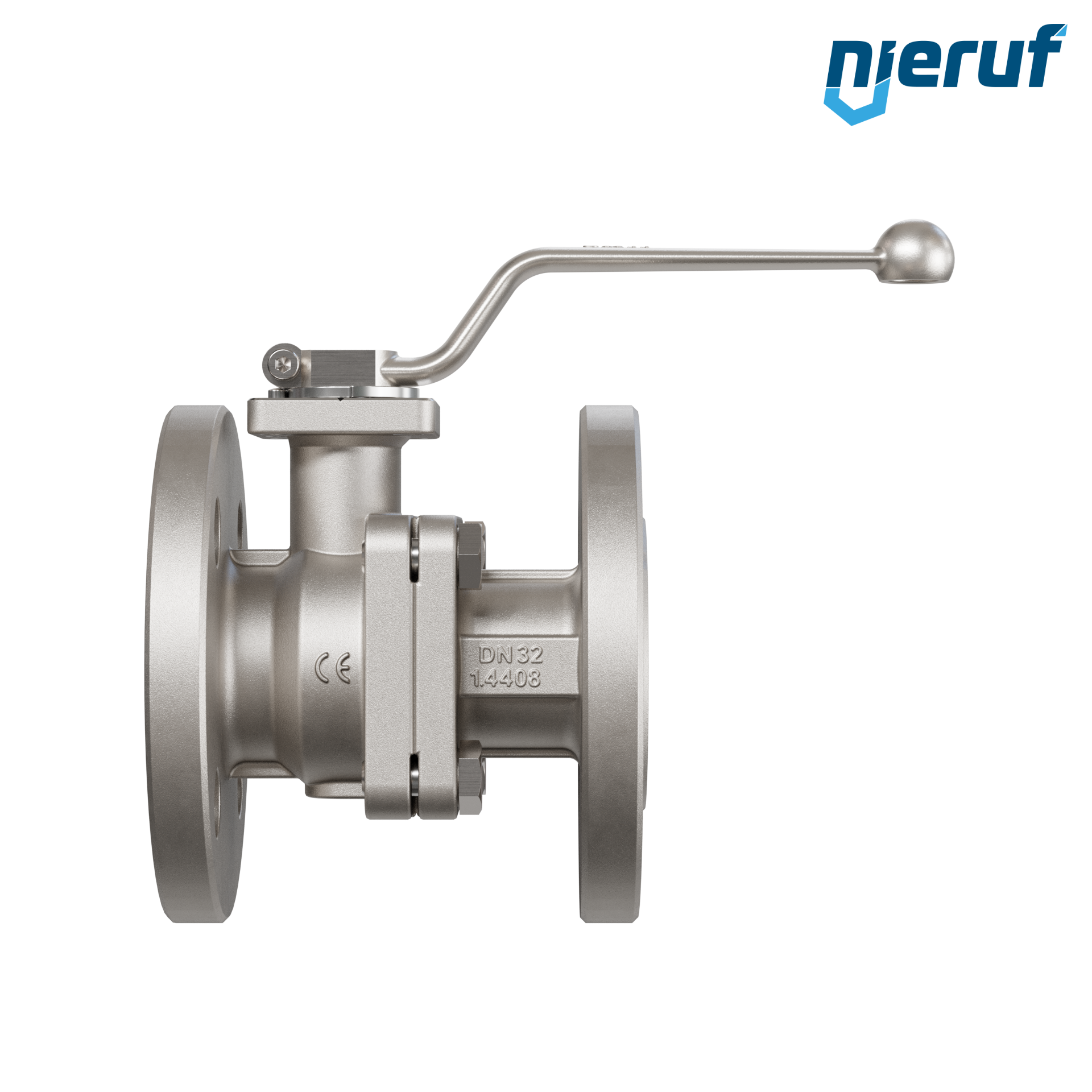 Kołnierzowy zawór kulowy DN32 PN16 FK05, korpus ze stali nierdzewnej 1.4408, kula ze stali nierdzewnej 1.4408, uszczelnienie z PTFE/GF do gazowych mediów, np. pary wodnej