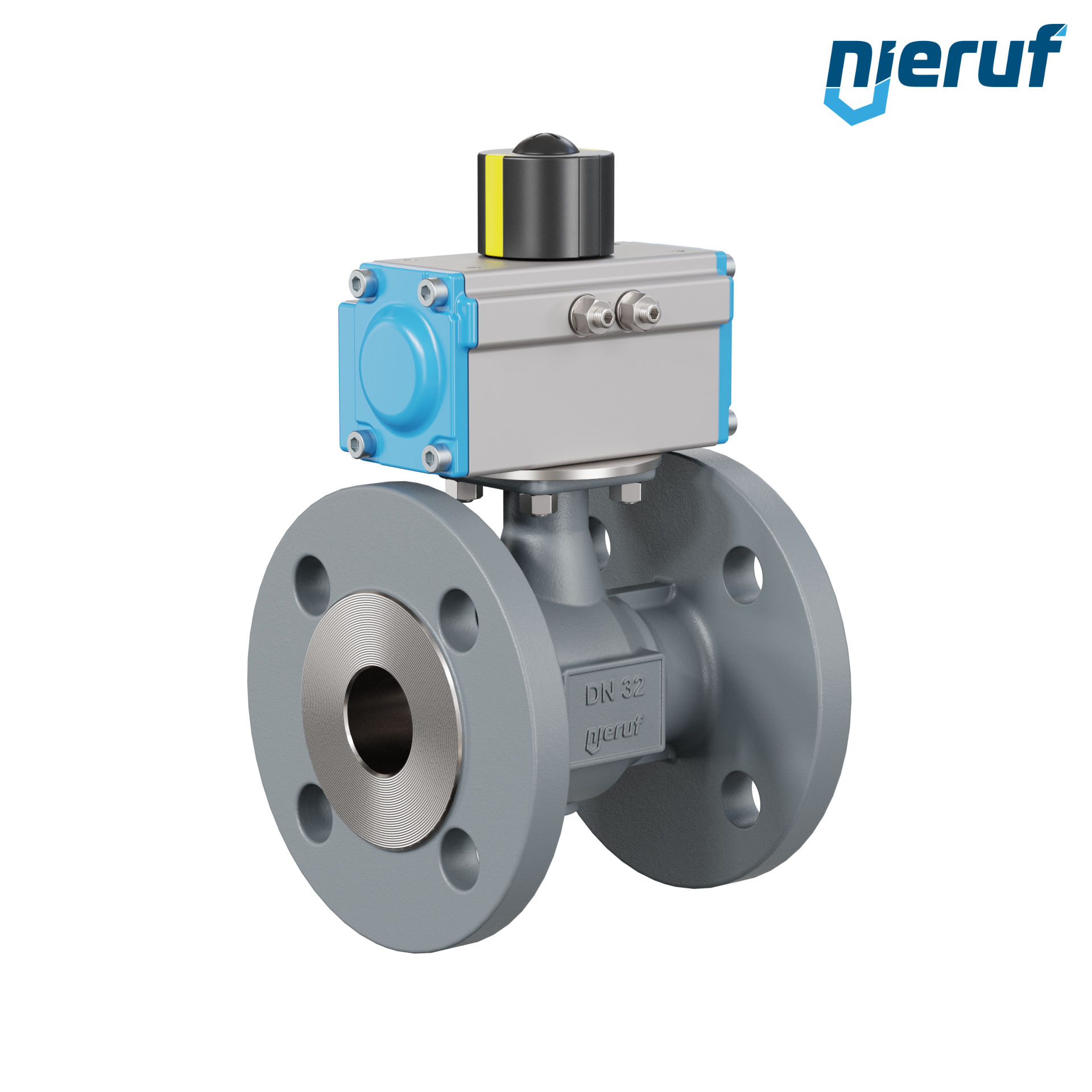 Automatyczny zawór kulowy kołnierzowy DN32 żeliwo sferoidalne GGG 40 PK04 pneumatyczny siłownik obrotowy GD040 z aluminium (funcja: GD = dwustronnego działania)