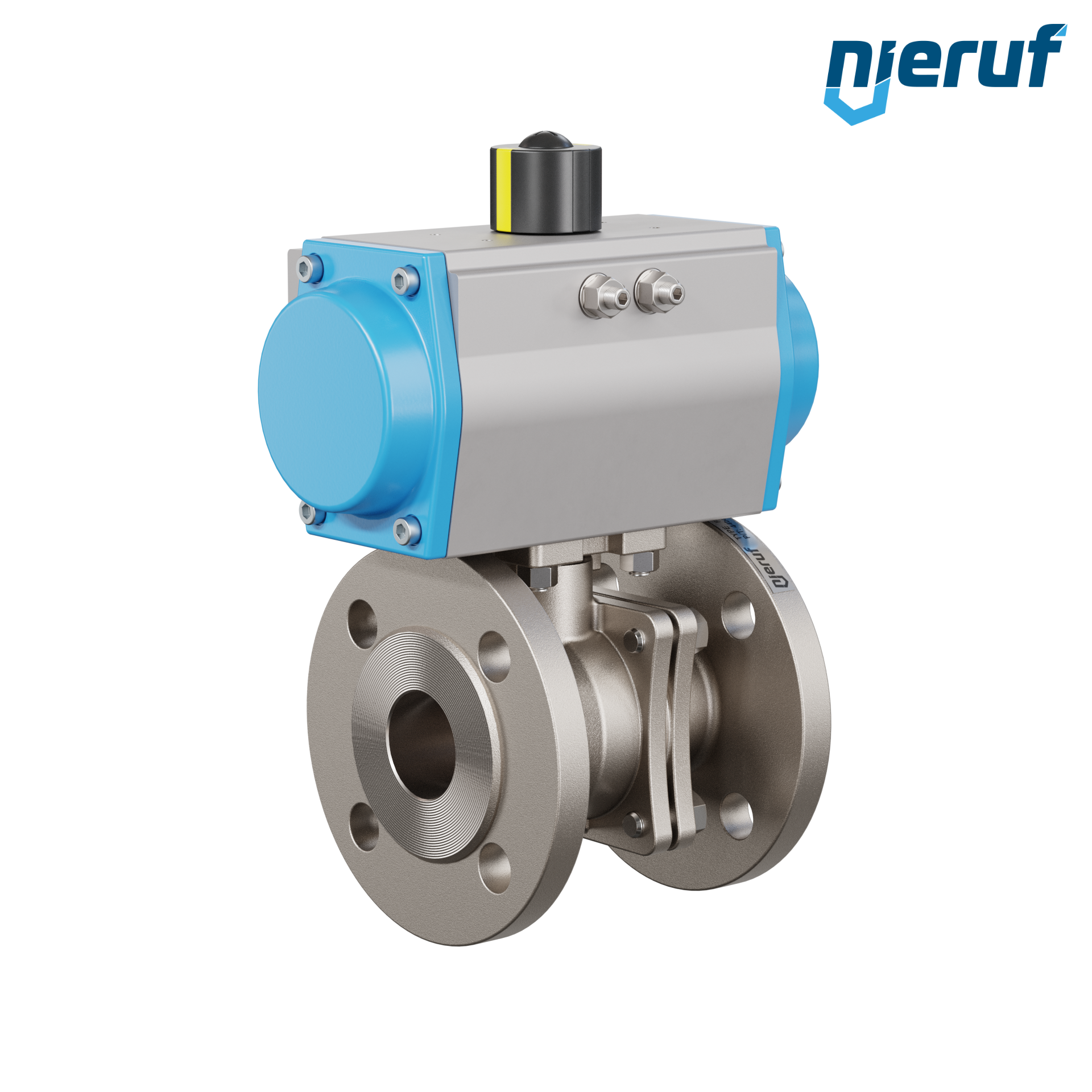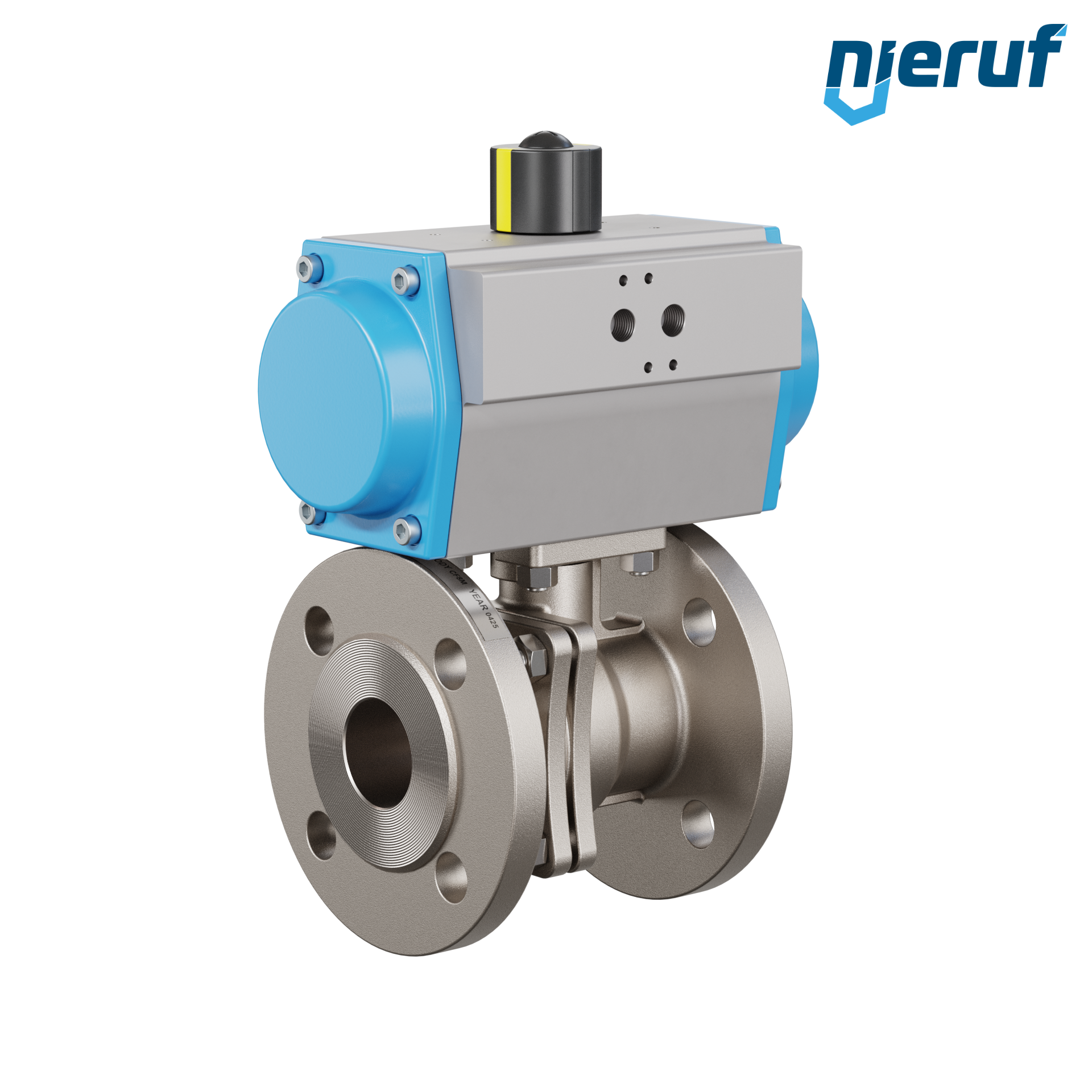 Kołnierzowy zawór kulowy z siłownikiem pneumatycznym (jednostronnego działania otwierany sprężyną)