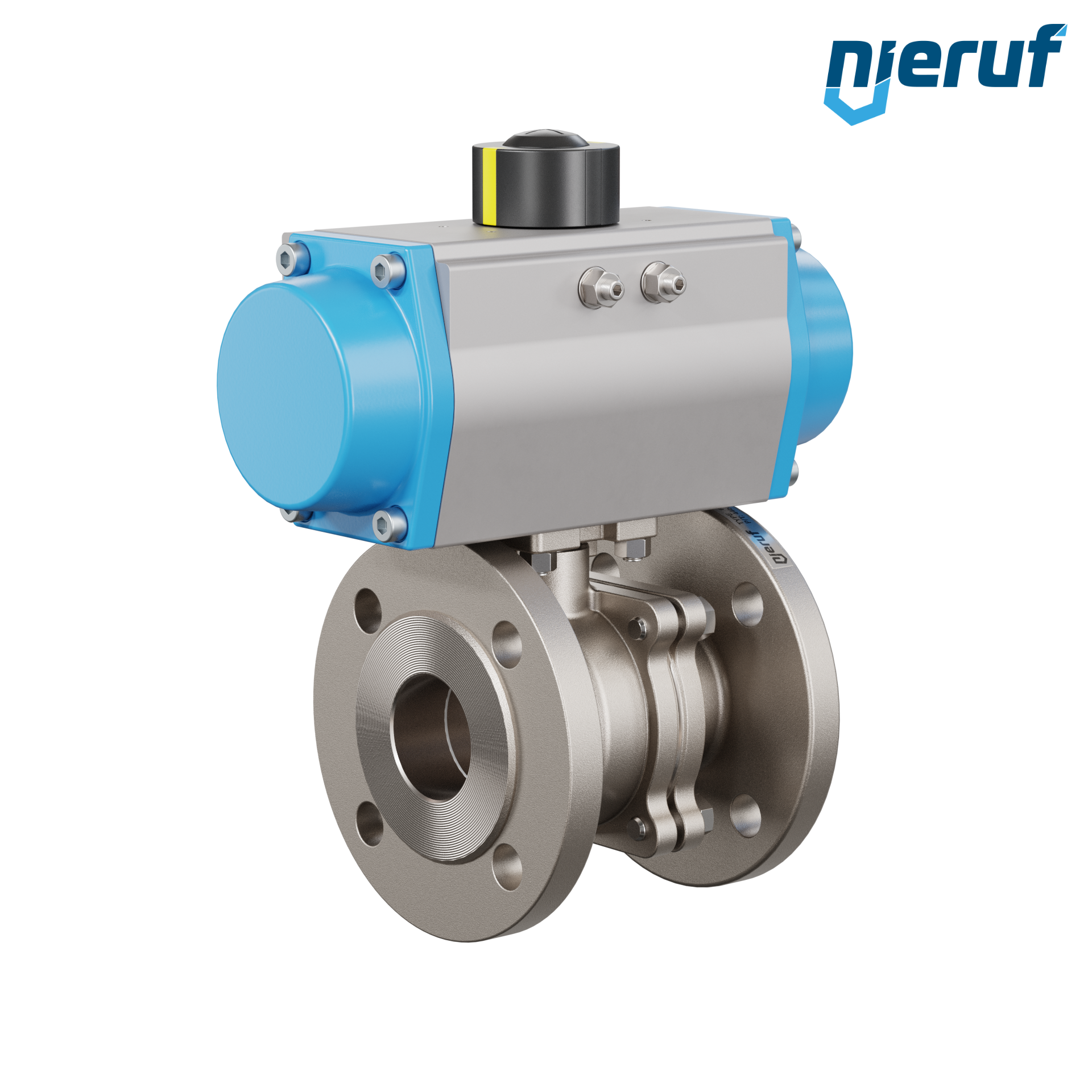 Ten wysokiej jakości automatyczny zawór kulowy mufowy ze stali nierdzewnej z pneumatycznym siłownikiem obrotowym (GS = jednostronnego działania) nie wymaga mostka ani sterownika.