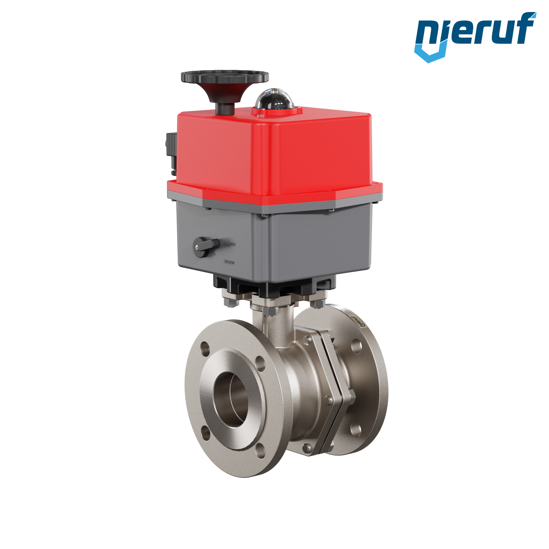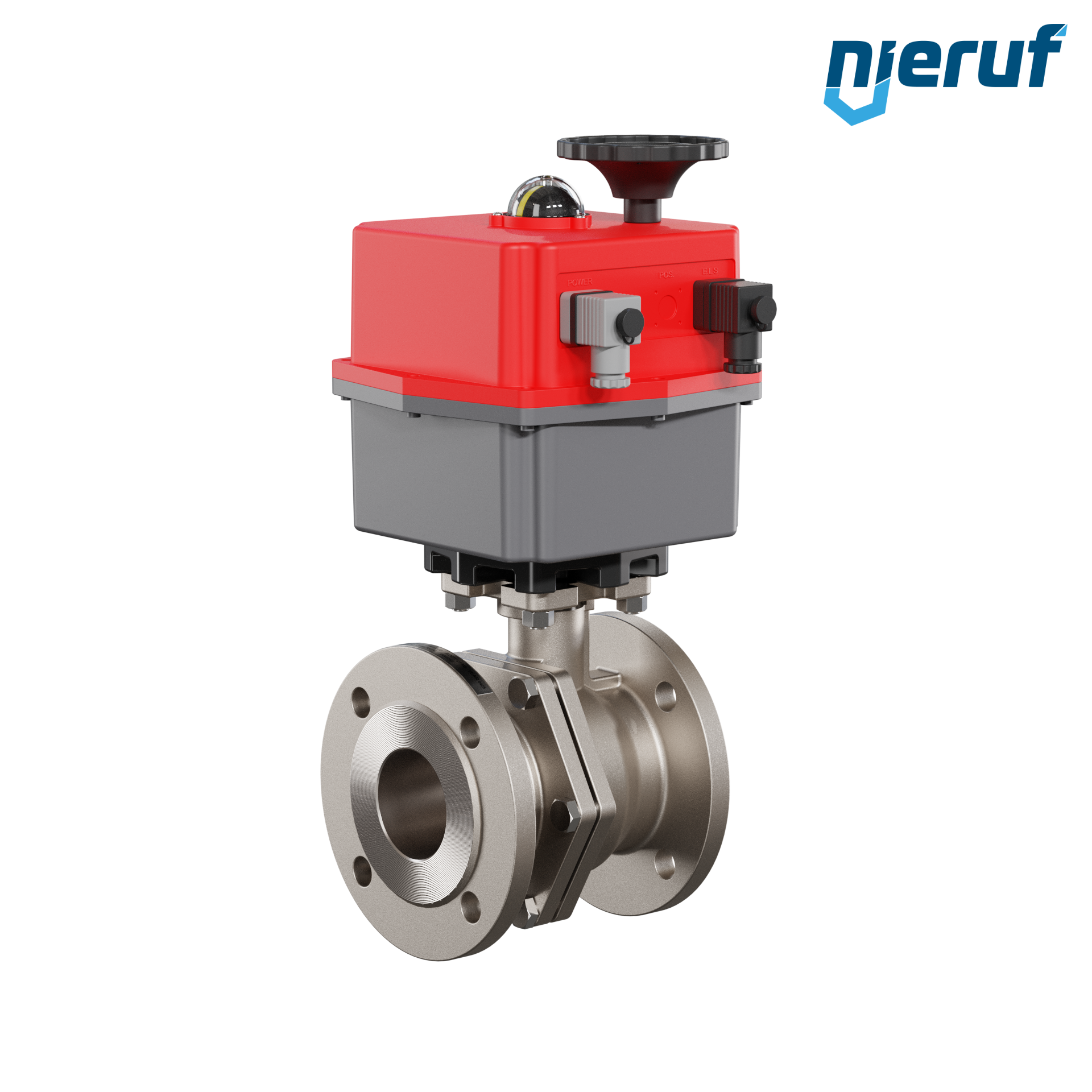 Ten wysokiej jakości automatyczny kołnierzowy zawór kulowy wykonany ze stali nierdzewnej z elektronicznym siłownikiem obrotowym (seria S = wielonapięciowa 24-240V AC/DC) posiada optyczny wskaźnik położenia i ręczne przesterowanie awaryjne.