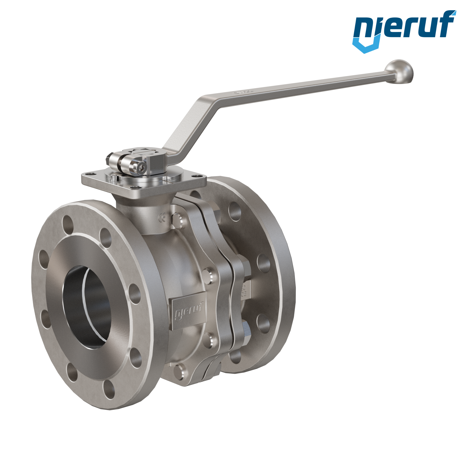 Ten wysokiej jakości zawór kulowy ze stali nierdzewnej ma trzpień odporny na wydmuchiwanie z uszczelnieniem grafitowym do mediów gazowuch, takich jak para. Korpus jest dwuczęściowy z kołnierzem montażowym zgodnym z normą DIN ISO 5211 i dźwignią ze stali nierdzewnej.