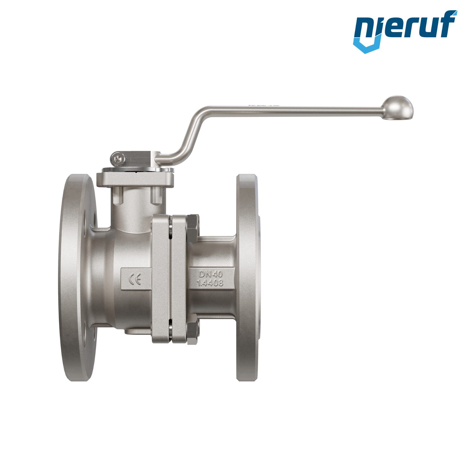 Kołnierzowy zawór kulowy FK05 DN40 PN40, korpus i kula ze stali nierdzewnej 1.4408, uszczelka TFM do neutralnych mediów płynnych i gazowych